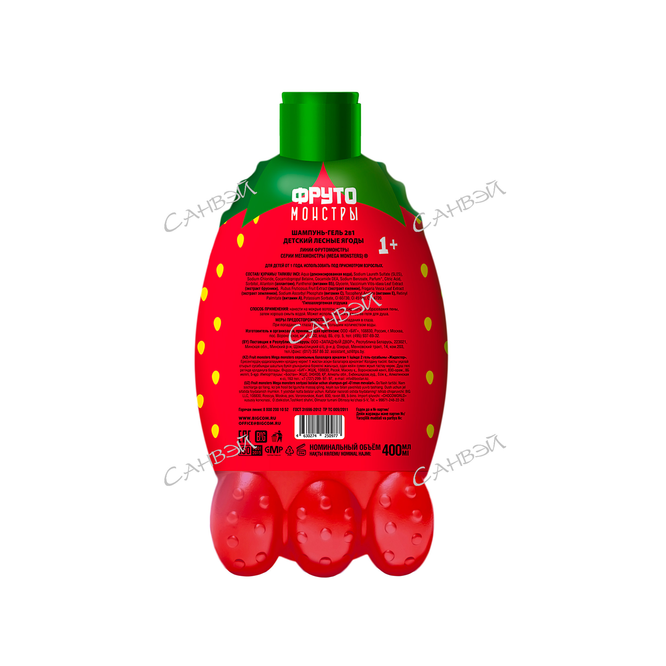 Забавный Фрутомонстр с ароматом лесной земляники превратит купание в настоящую игру. Собирай коллекцию веселых друзей для яркого купания! Шампунь-гель с кондиционером Лесные ягоды содержит: