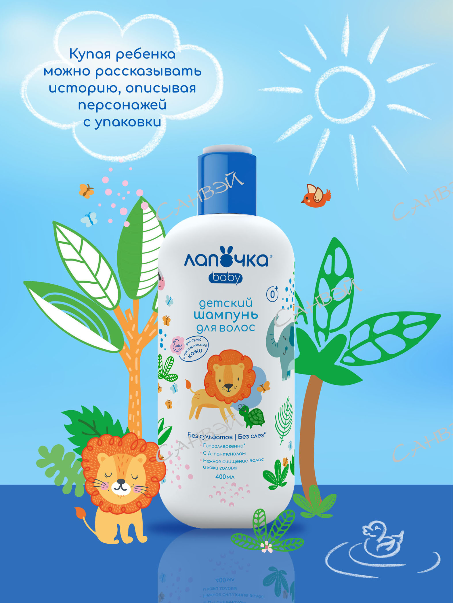 Правильный уход за волосами и кожей головы младенца - это очень важный вопрос. Так важно подобрать шампунь, обеспечивающий мягкое очищение и не вызывающий у малыша беспокойства и слез. Мягкий шампунь Лапочка 400 мл из Санвэй - нежный и заботливый, как мамины руки, не содержит мыла и не вызывает слез. Мы разработали комфортный и безопасный продукт, обогащенный натуральными экстрактами и активными компонентами, обеспечивающий мягкое очищение и уход без слез.