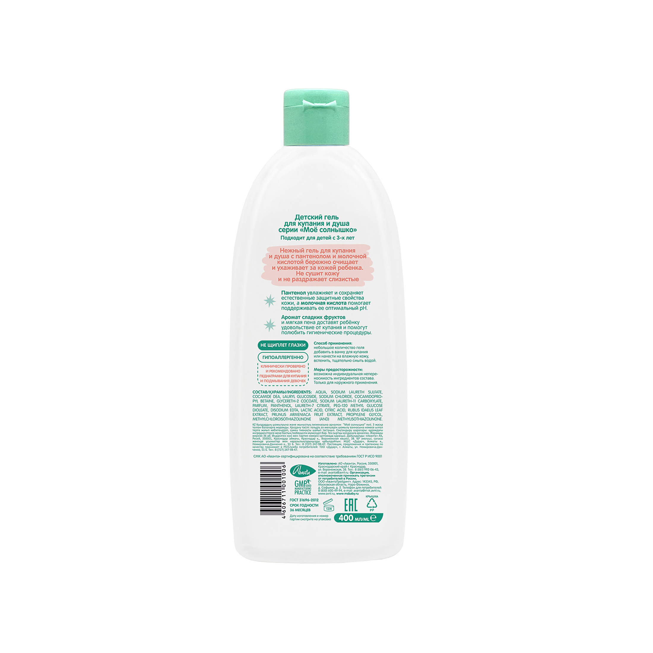 Детский гель для купания и душа серии «Моё солнышко» Нежный гель для купания и душа с пантенолом и молочной кислотой бережно очищает и ухаживает за кожей ребенка. Не сушит кожу и не раздражает слизистые