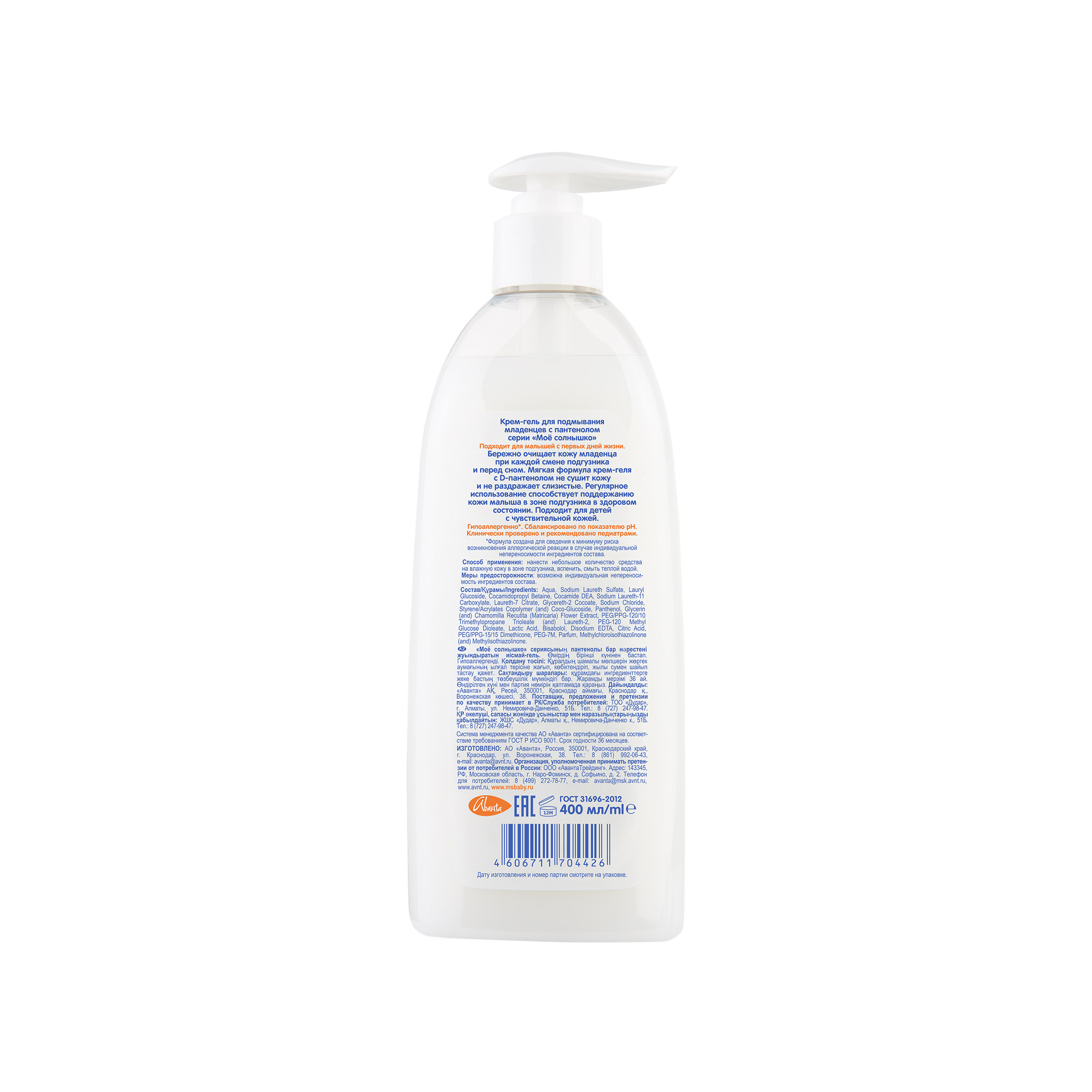 Крем-гель для подмывания младенцев с пантенолом Моё солнышко, 400 мл из магазина Санвэй бережно очищает кожу младенца при каждой смене подгузника и перед сном. Мягкая формула крем-геля с D-пантенолом не сушит кожу и не раздражает слизистые. Регулярное использование способствует поддержанию кожи малыша в зоне подгузника в здоровом состоянии. Подходит для чувствительной кожи