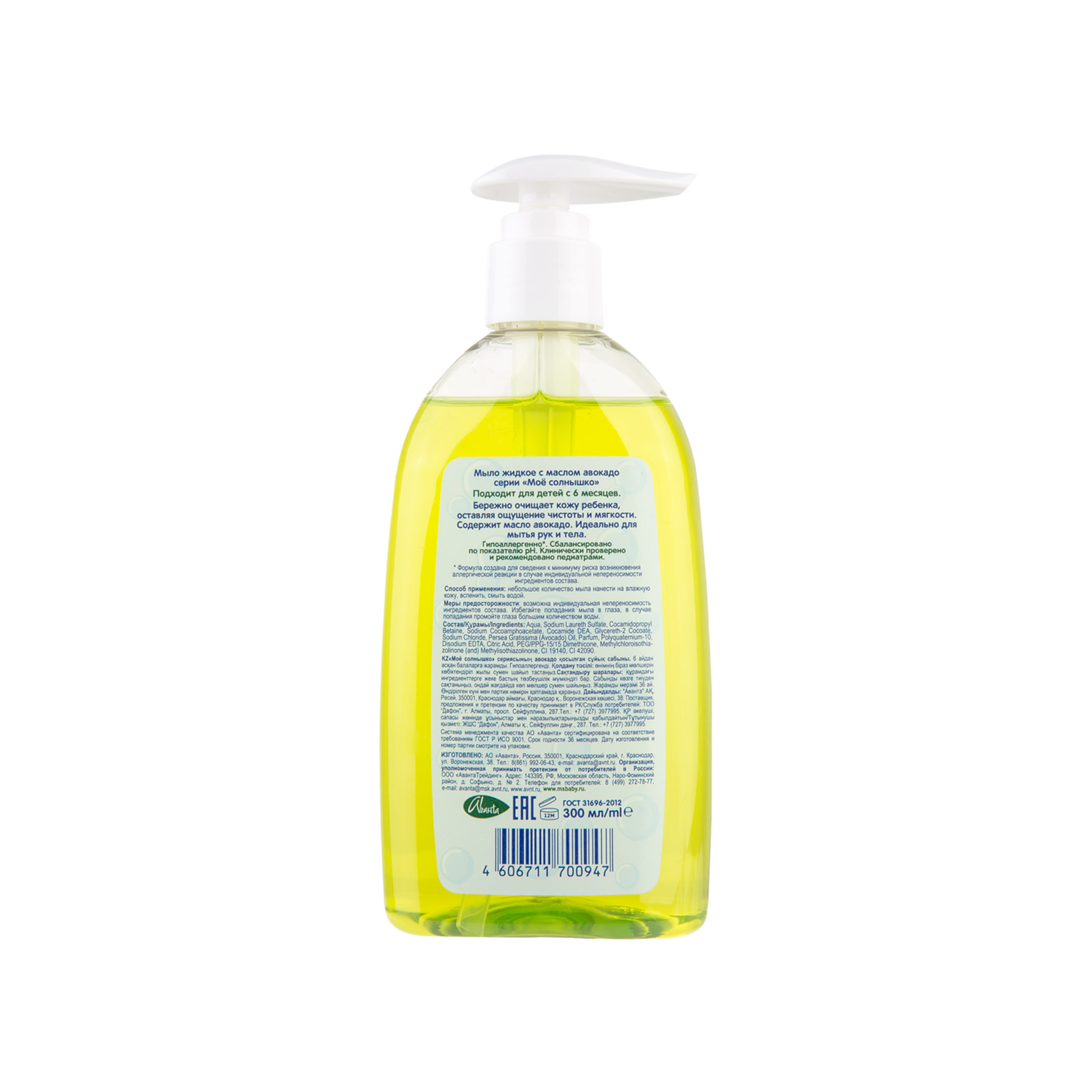 Жидкое мыло с с маслом авокадо "Моё солнышко" 300 мл из магазина Санвэй бережно очищает кожу ребенка, оставляя ощущение чистоты и мягкости. Содержит масло авокадо. Идеально для мытья рук и тела.