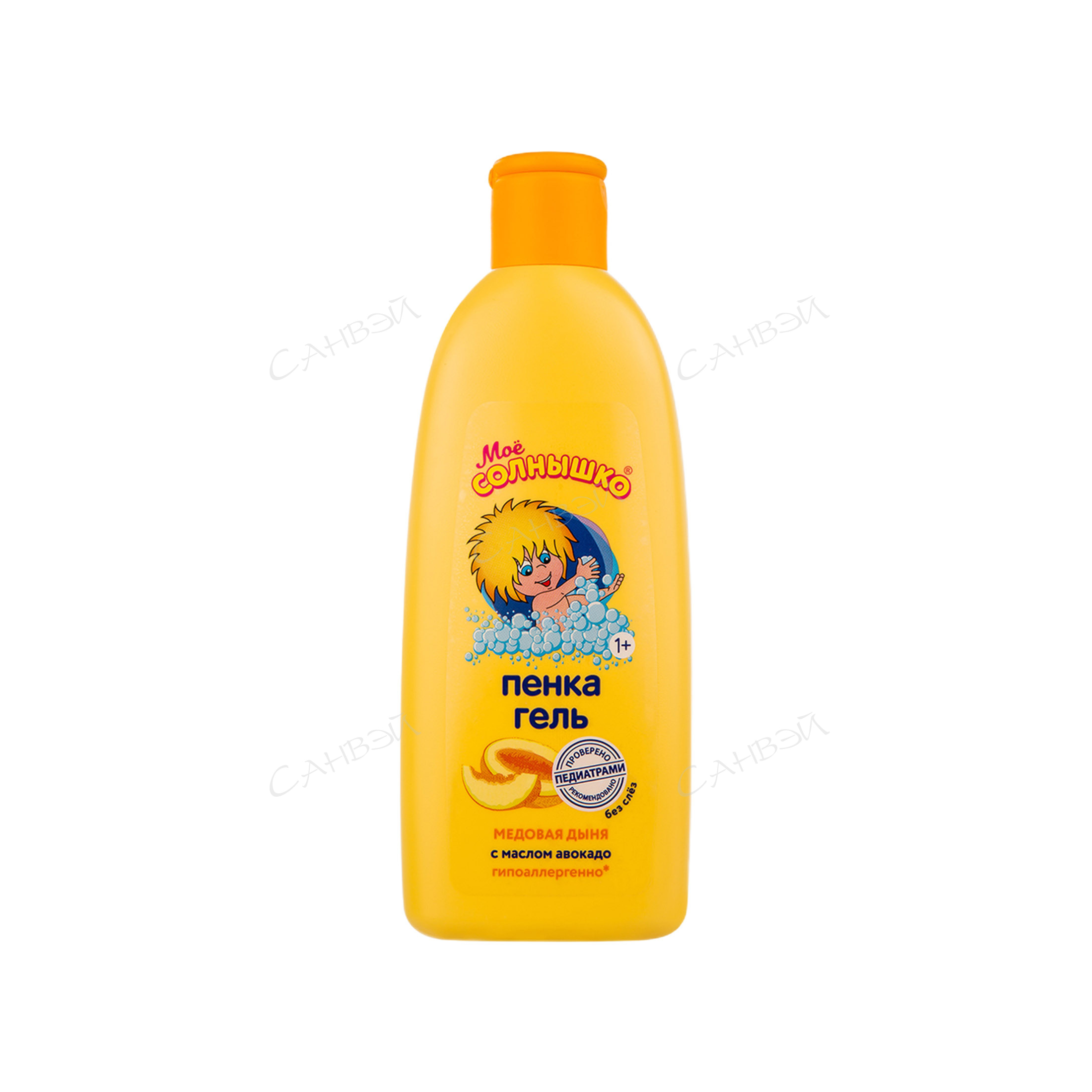 Пенка-гель Медовая дыня "Моё солнышко", 200 мл из магазина Санвэй мягко очищает кожу ребенка, создает воздушную и ароматную пену для ванны. Содержит масло авокадо. Хорошо подходит для ежедневного использовния, не сушит нежную детскую кожу.