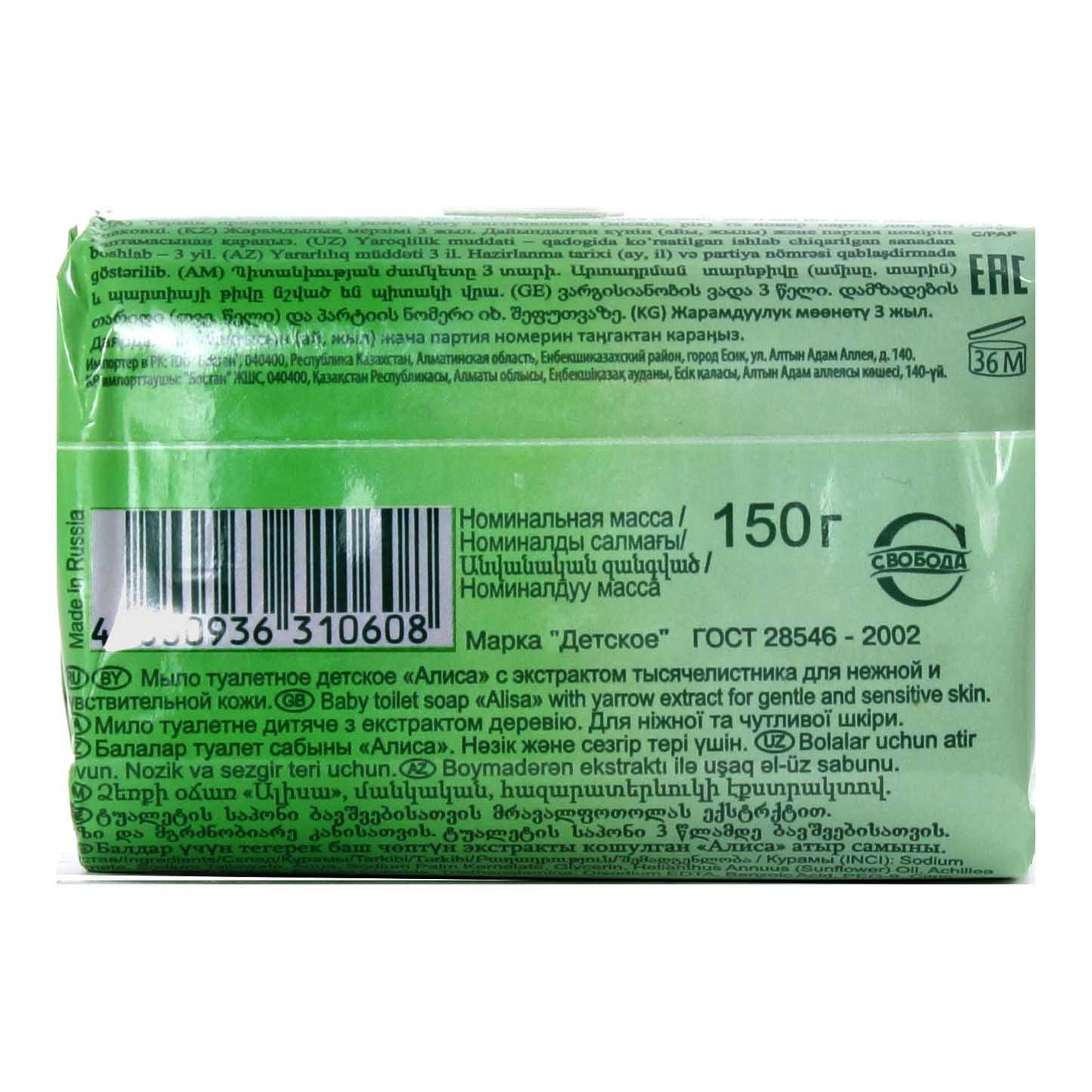 Свобода Алиса мыло твердое детс. 150 гр. противоспал.эффект д/чув.кожи экст.тысячелист. б/уп. 1шт / 36шт / 107 / 310608