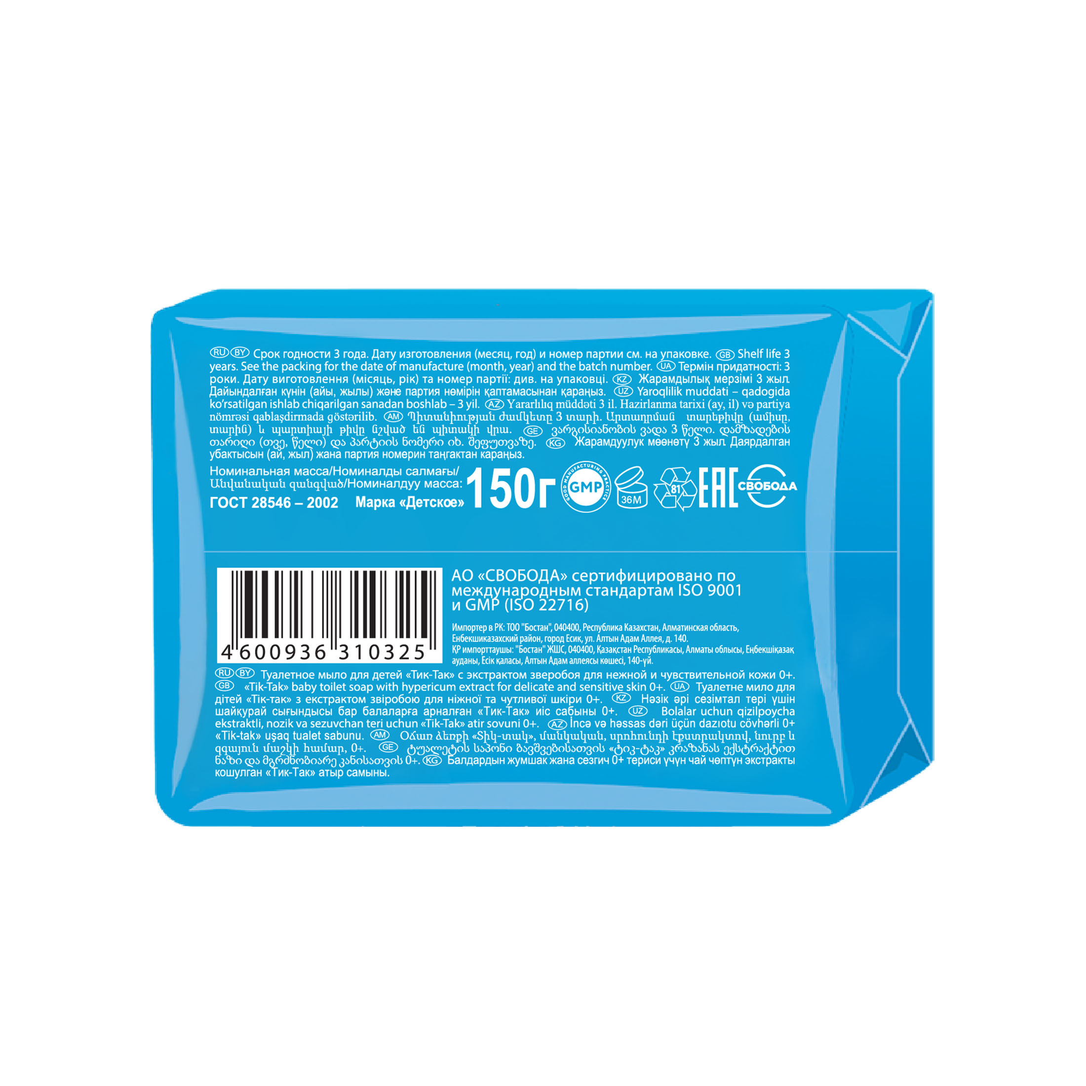 Тик-Так мыло твердое детс. 150 гр. увлаж. д/неж.и чувс.кожи экст.зверобоя 0+ б/уп. 1шт / 36шт / 122 / 310325