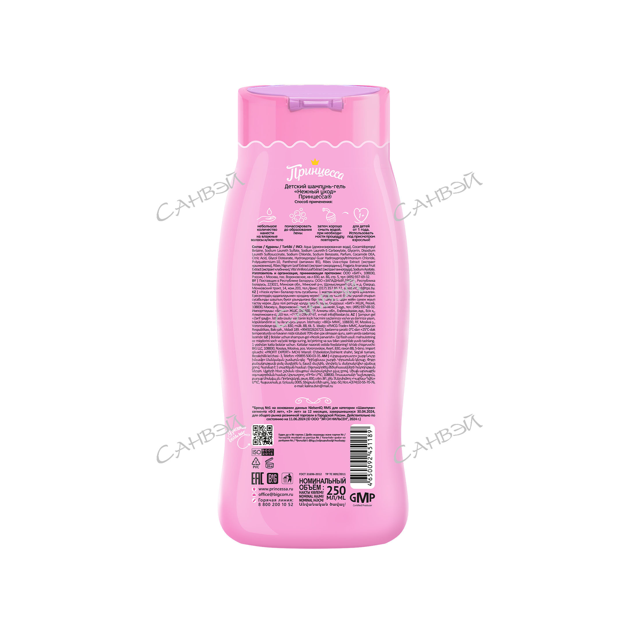 Шампунь «Нежный уход» подарит маленькой Принцессе бережный уход за чувствительной кожей головы и волосами. Нежный сладкий аромат клубники подарит любой Принцессе прекрасное настроение. Шампунь успокаивает чувствительную кожу головы, делает волосы послушными, придает им блеск. Мягкий состав шампуня позволяет использовать его ежедневно, в том числе и в качестве геля для душа. Насыщенность натуральными компонентами обеспечивает особый уход и легкое расчесывание.