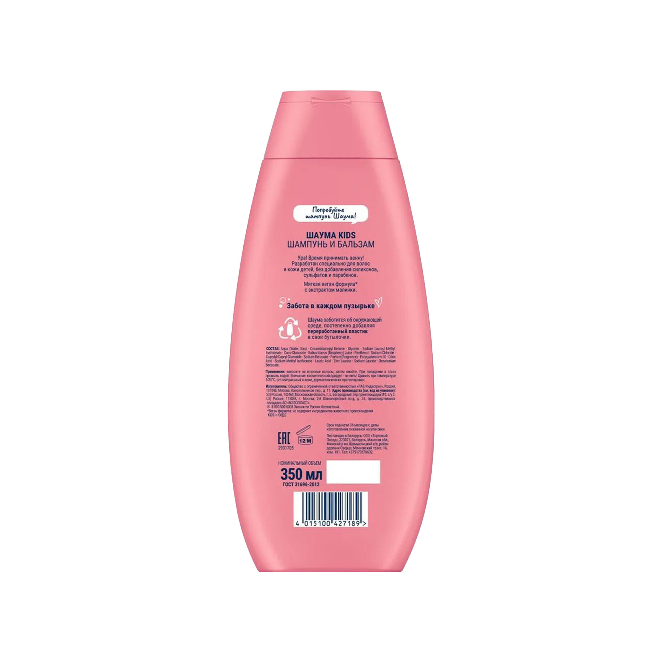 Шаума Шампунь детский Kids 2в1 для девочек 350 мл это нежный и бережный уход специально для волос и тела детей для девочек.