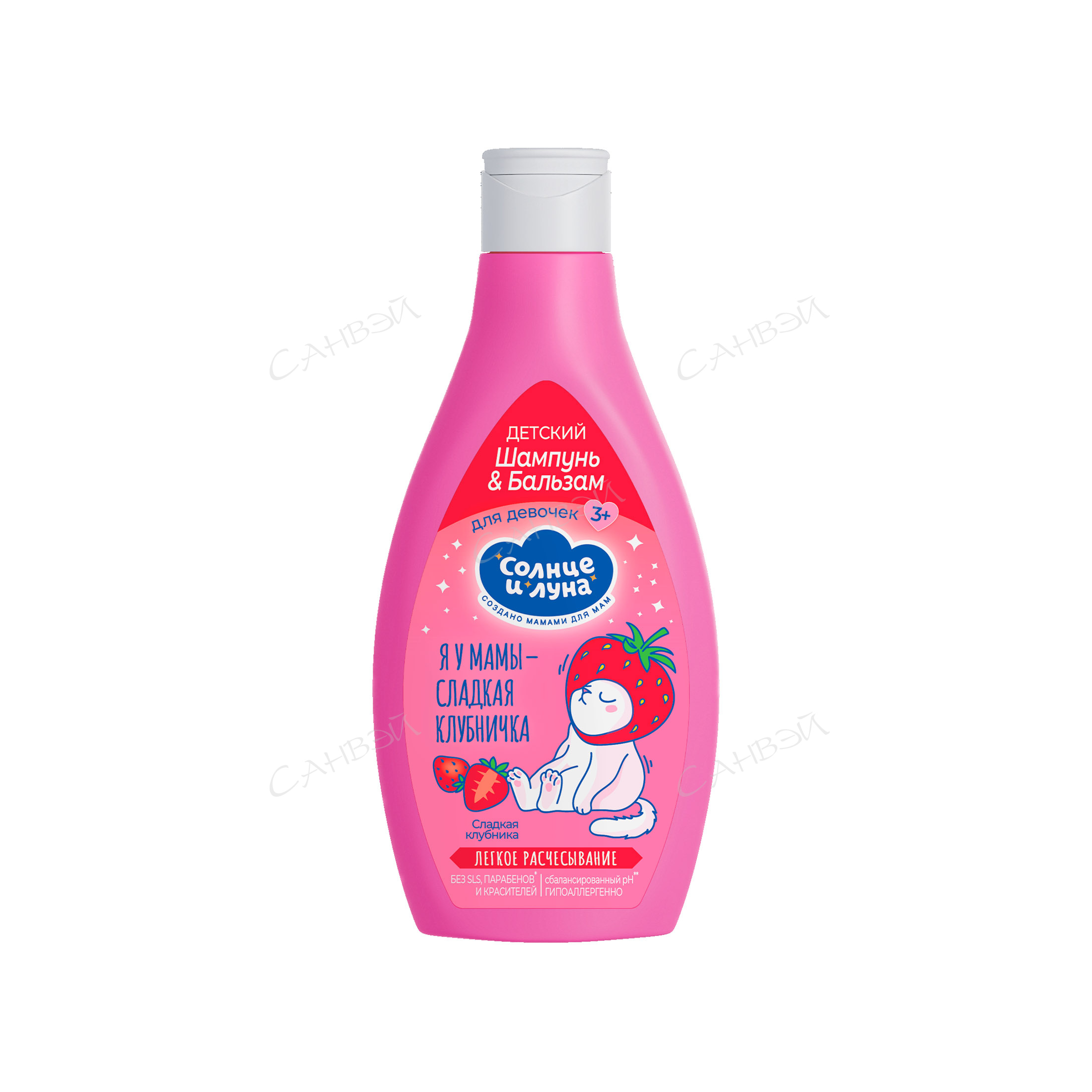 Детский шампунь-бальзам «СОЛНЦЕ И ЛУНА» не только очищает кожу головы, но и обеспечивает волосам дополнительный бережный уход, делая их послушными и шелковистыми. Экстракт яблока придает волосам блеск. Шампунь-бальзам с ароматом клубники подарит радость от купания и с ранних лет привьёт девочкам любовь к уходу за собой.