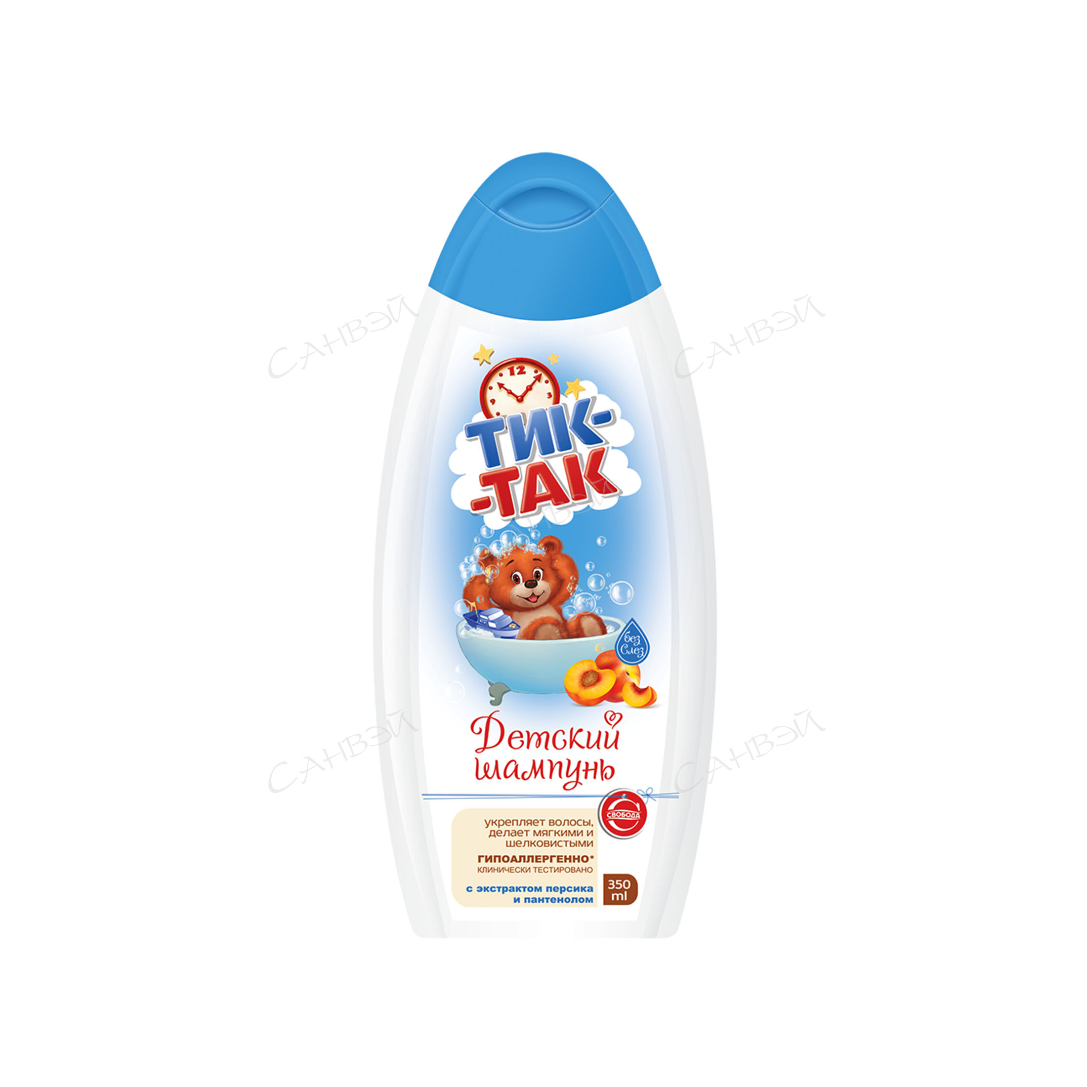 Детский шампунь Тик-так с экстрактом персика укрепляет волосы и делает их мягкими и шелковистыми.