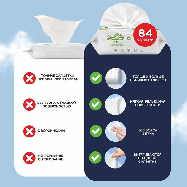 - Салфетки гипоаллергенные, не содержат спирт и парабены, пластиковый клапан защищает салфетки от пересыхания. Наши салфетки произведены из высококачественных, натуральных и экологически чистых материалов, которые сохраняют идеальный баланс влажности и прочности салфетки.