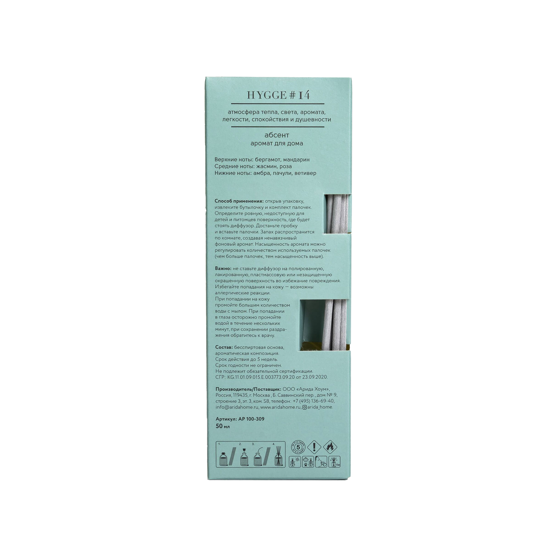 Arida Home Аромадиффузор с палочками Hygge 14 Абсент 50 мл из интернет-магазина Санвэй — это безопасный, экологически чистый и натуральный способ ароматизации помещения, является прекрасной альтернативой ароматизированным спреям. Диффузор представляет собою изящную стеклянную емкость с ароматной жидкостью. В нее вставляются несколько длинных фибровых палочек. Постепенно, насыщаясь эфирными маслами, они распространяют аромат по всей комнате.