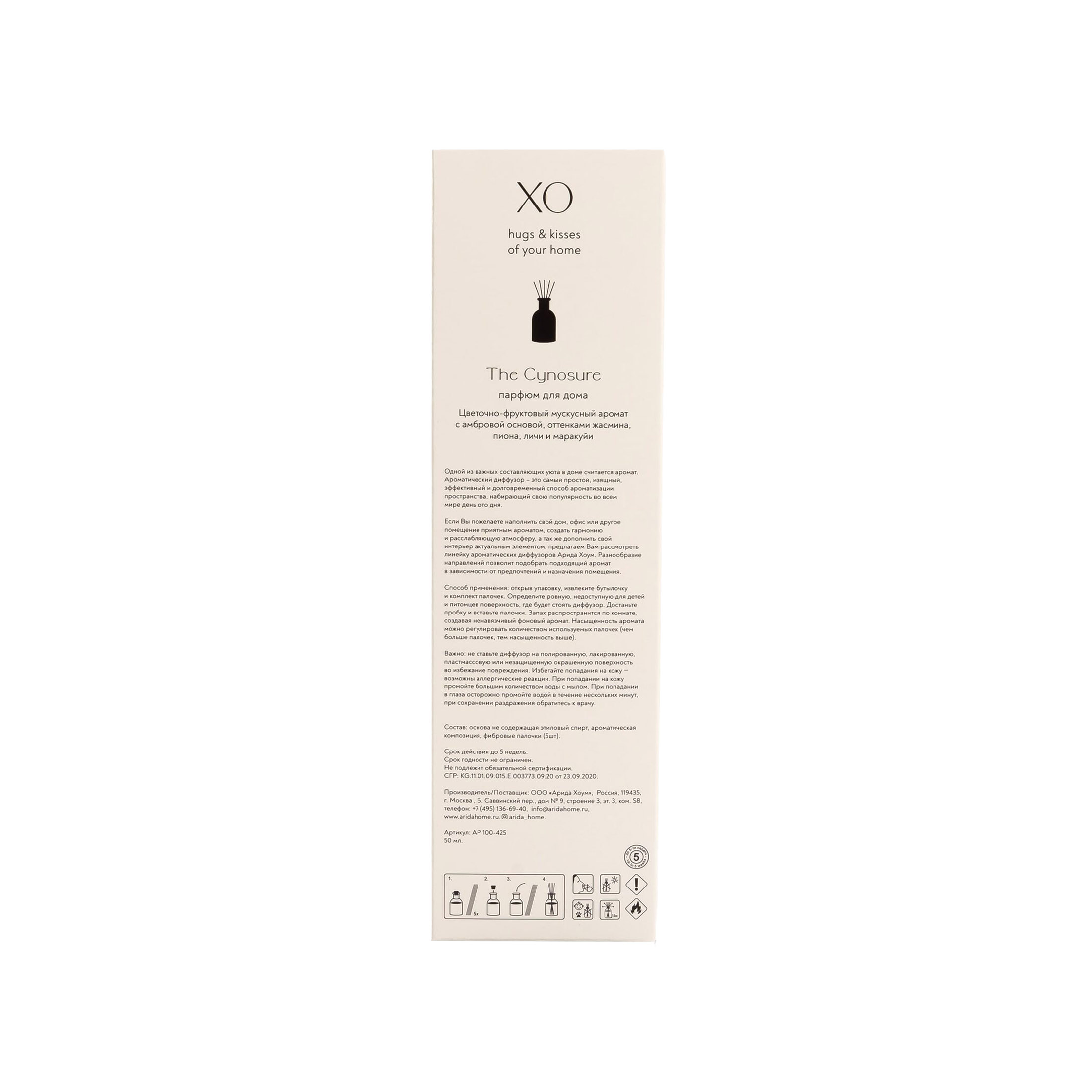 Arida Home Аромадиффузор с палочками Парфюм для дома XO The Cynosure 50 мл из интернет-магазина Санвэй - цветочно-фруктовый мускусный аромат с амбровой основой, оттенками жасмина, пиона, личи и маракуйи.