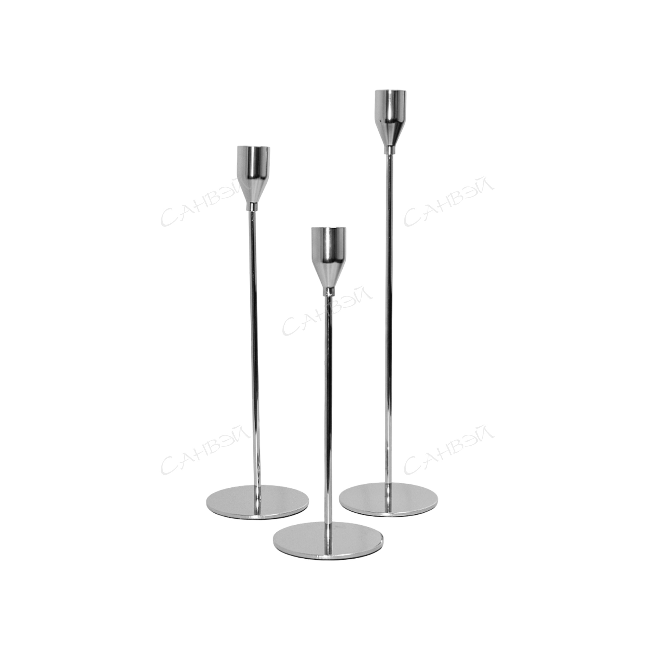 DVL Подсвечник на длин.ножке на 1 свечу (22+27+32см) серебряный металл GT карт/уп 1уп. / 48шт / 7950-5 / 729145