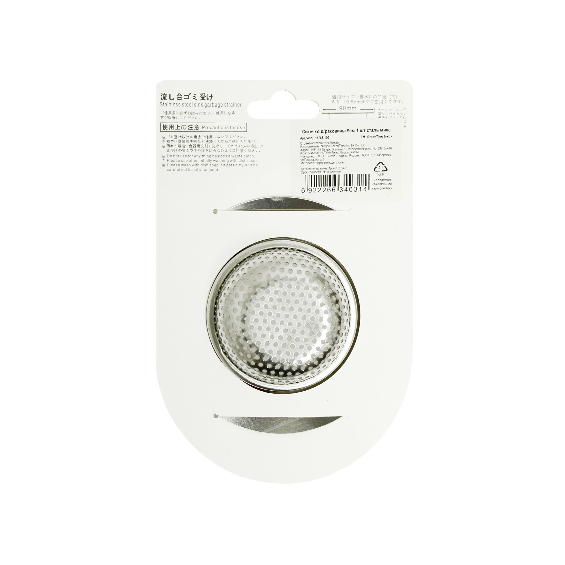 Ситечко д/раковины 9см 1 шт сталь микс GT / 360шт / 16788-100 / 340314