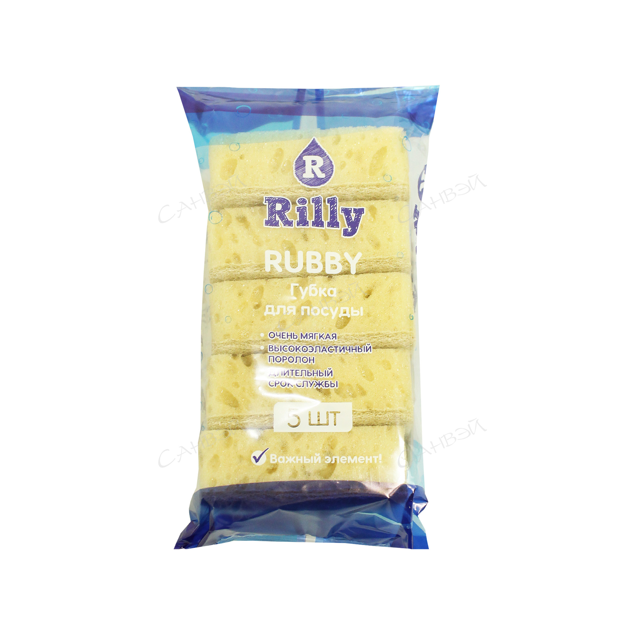 Губка д/мытья посуды (5шт) Rilly Rubby 9,5*7*3,5см поролон,абразив. прямоуг. бежевая 1уп. / 64шт / РУББИ5ШБЕЖ / 451124