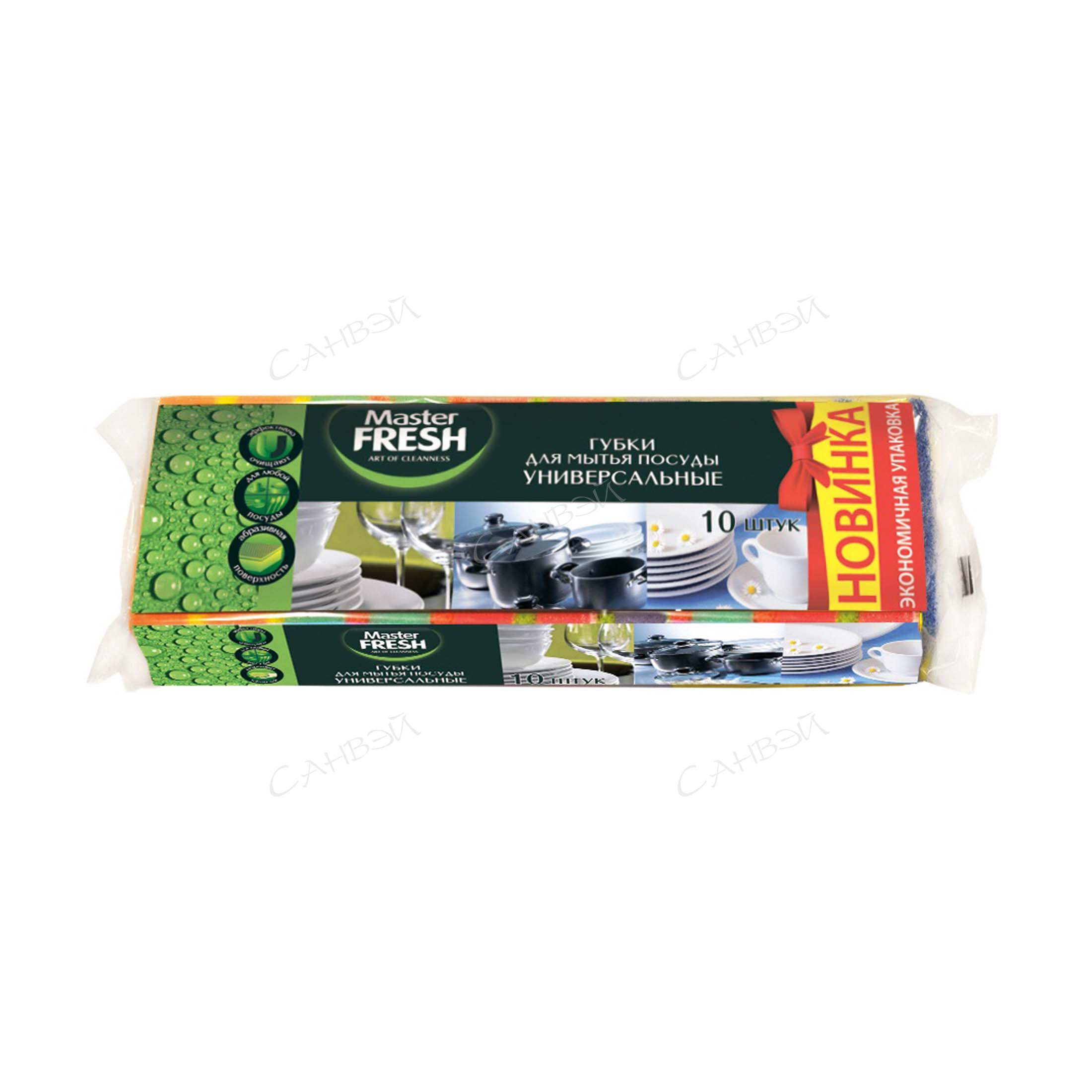 Мастер Фреш Губки д/мытья посуды универсальные 10шт/40,60шт/MFDSUN-10F/970106