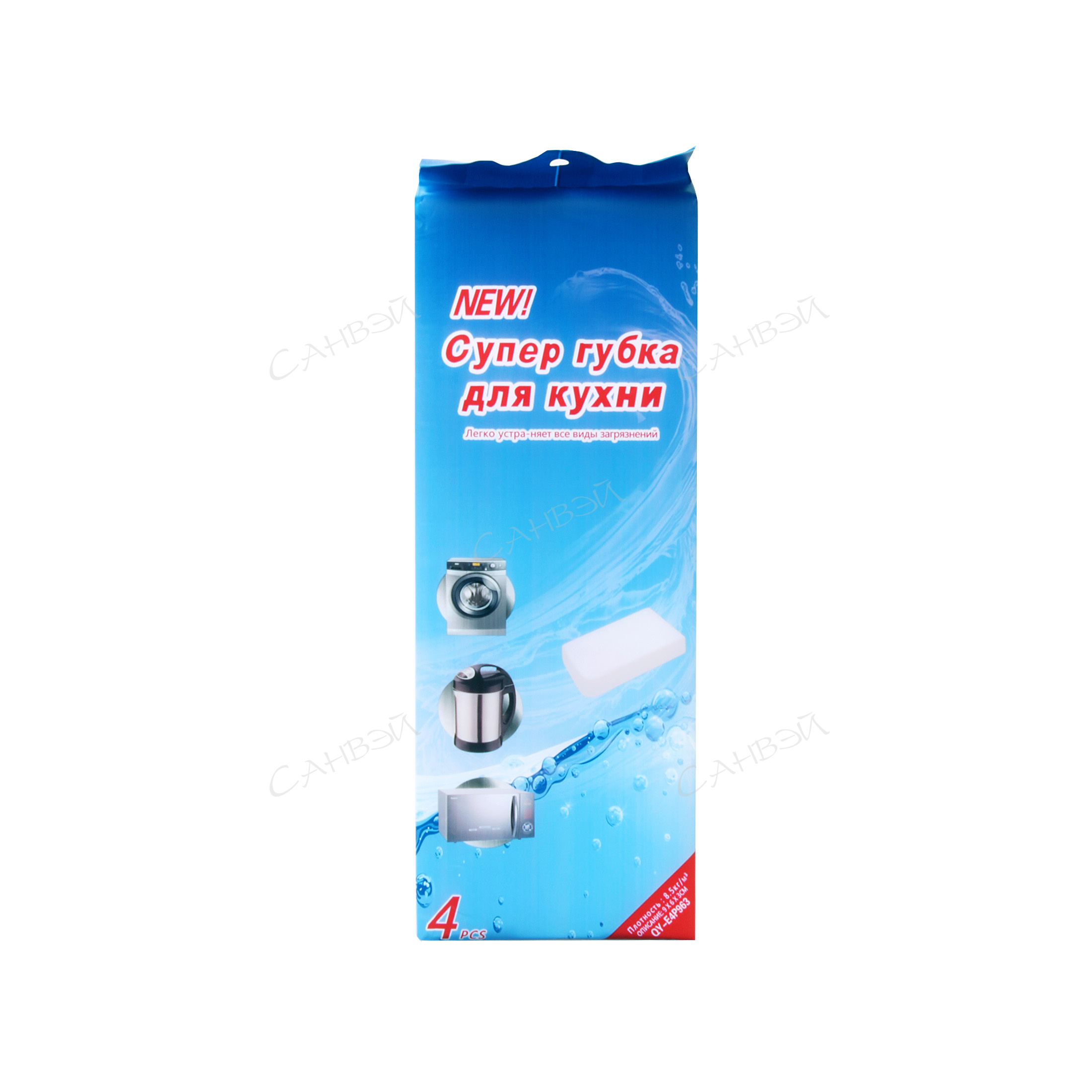 MU Губка д/мытья посуды (4шт) GT 9*6*3см набор меламин белая 1 уп. пакет / 600шт / EW40403-383 / 522771