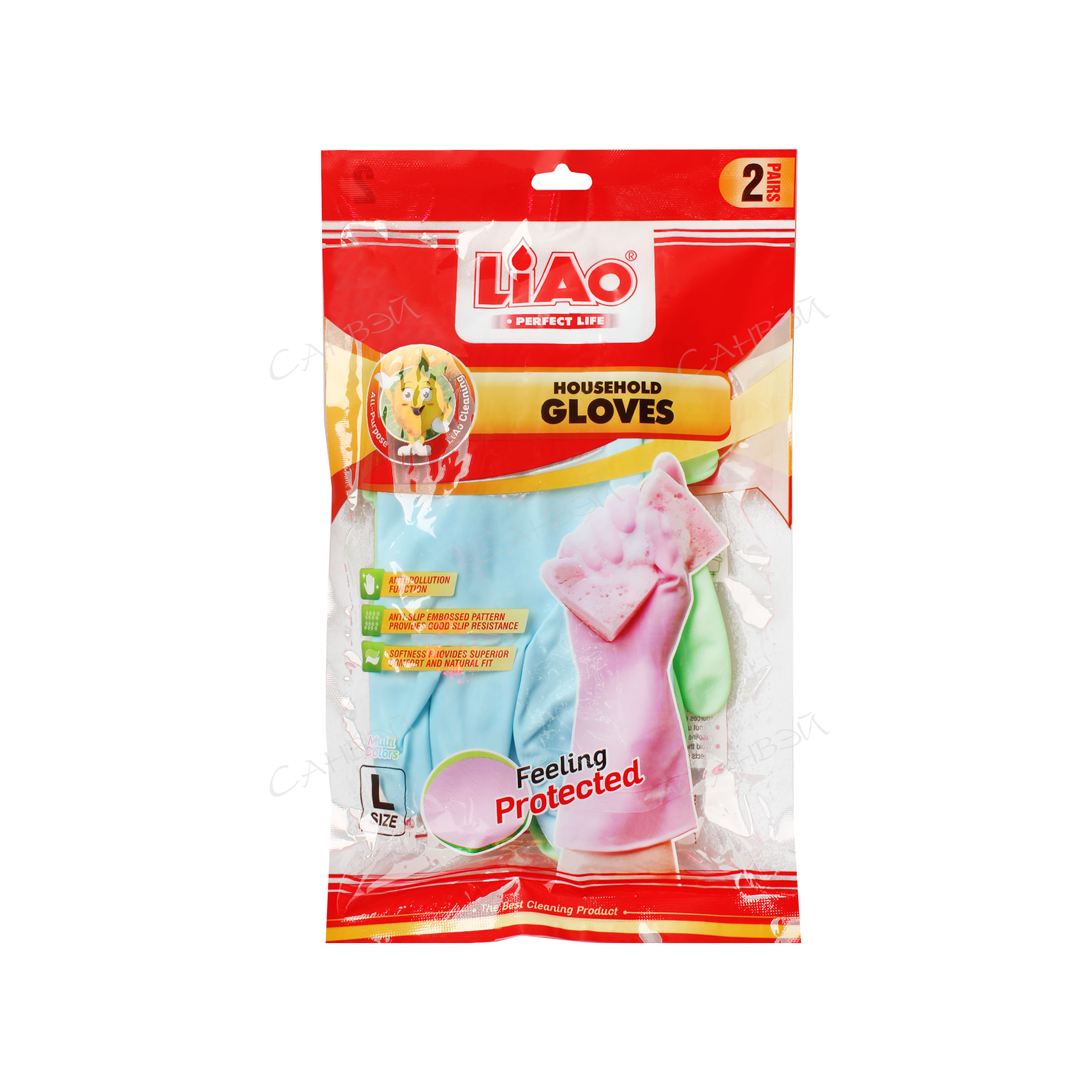 LA Перчатки д/уборки (2 пары) (L) Liao набор латекс микс 1 уп. пакет / 72шт / H130075 / 570908,709081