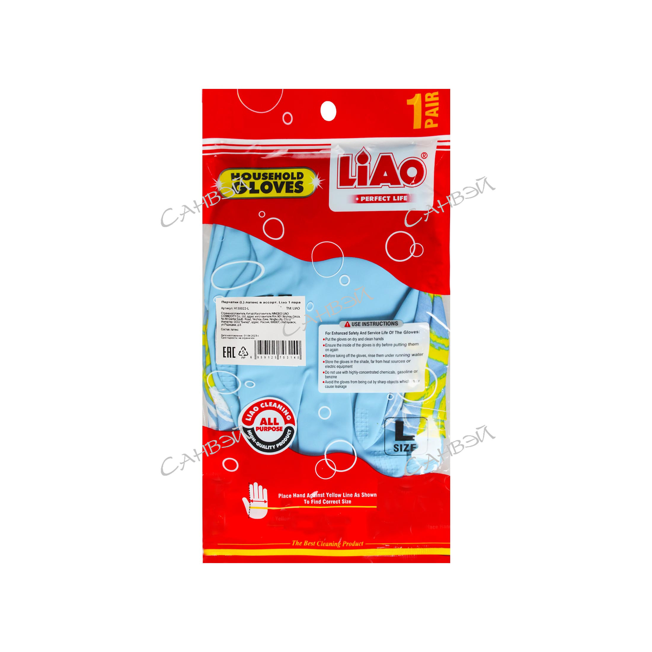 Перчатки д/уборки Liao (L) универс. латекс микс 1 пара / 120шт / H130022-L / 703140