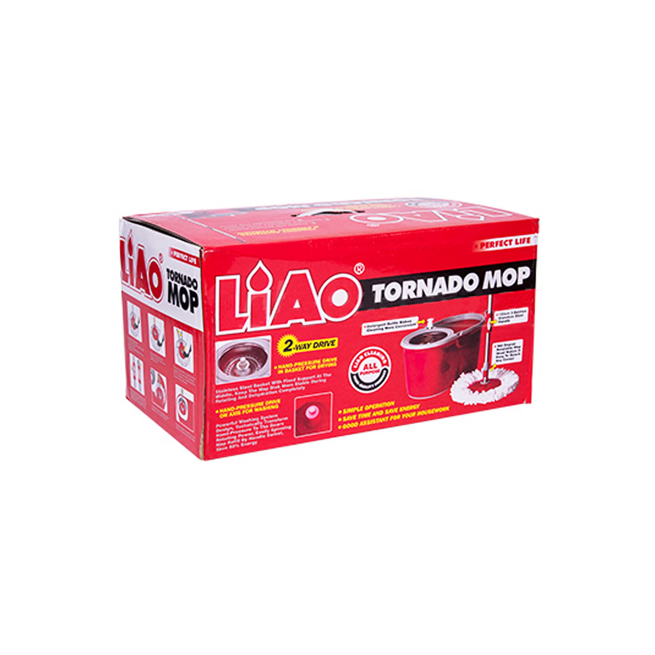 Набор для уборки Liao Tornado Mop включает в себя швабру, 2 моющих полотна из микрофибры, емкость с отжимной центрифугой и флакон с дозатором для моющего средства. Благодаря инновационному дизайну, швабра сама очищается и выжимает лишнюю воду без необходимости физического касания, так что вам больше не придется мочить свои руки. Ведро состоит из 2 отсеков: отсек для промывания насадки от грязи и пыли; отсек с центрифугой для отжима влаги. Подвижная часть ручки швабры легко опускается и обеспечивает вращение насадки как в отсеке для полоскания, так и в центрифуге для отжима. За счет количества вращений можно контролировать уровень влажности моющего полотна. Металлическая центрифуга более долговечна, чем пластиковая. Насадка на швабру из микрофибры легко очищает грязь, пыль и прочий мусор с любых твердых поверхностей: мрамор, плитка, ламинат, виниловые и деревянные полы. Флакон с дозатором лаконично встроен в конструкцию набора. При этом его легко достать при необходимости. Телескопичес