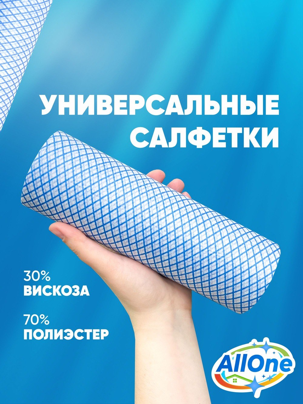 Салфетки для уборки Allone для уборки 21,5x30 см — это надежное и удобное средство для быстрой и эффективной очистки различных поверхностей в доме или офисе. В упаковке находится 50 штук, что позволяет обеспечить чистоту на длительный срок. Смесь нейлона (70%) и вискозы (30%) обеспечивает прочность, мягкость и хорошую впитываемость. Голубой цвет салфеток делает процесс уборки более приятным и эстетичным. Высокое качество материалов, салфетки не рвутся и легко удаляют пыль, грязь и жир. Салфетки универсальны и подходят для очистки кухонных поверхностей, мебели, бытовой техники и других предметов. Идеальный выбор для тех, кто ценит качество и эффективность в домашних делах!