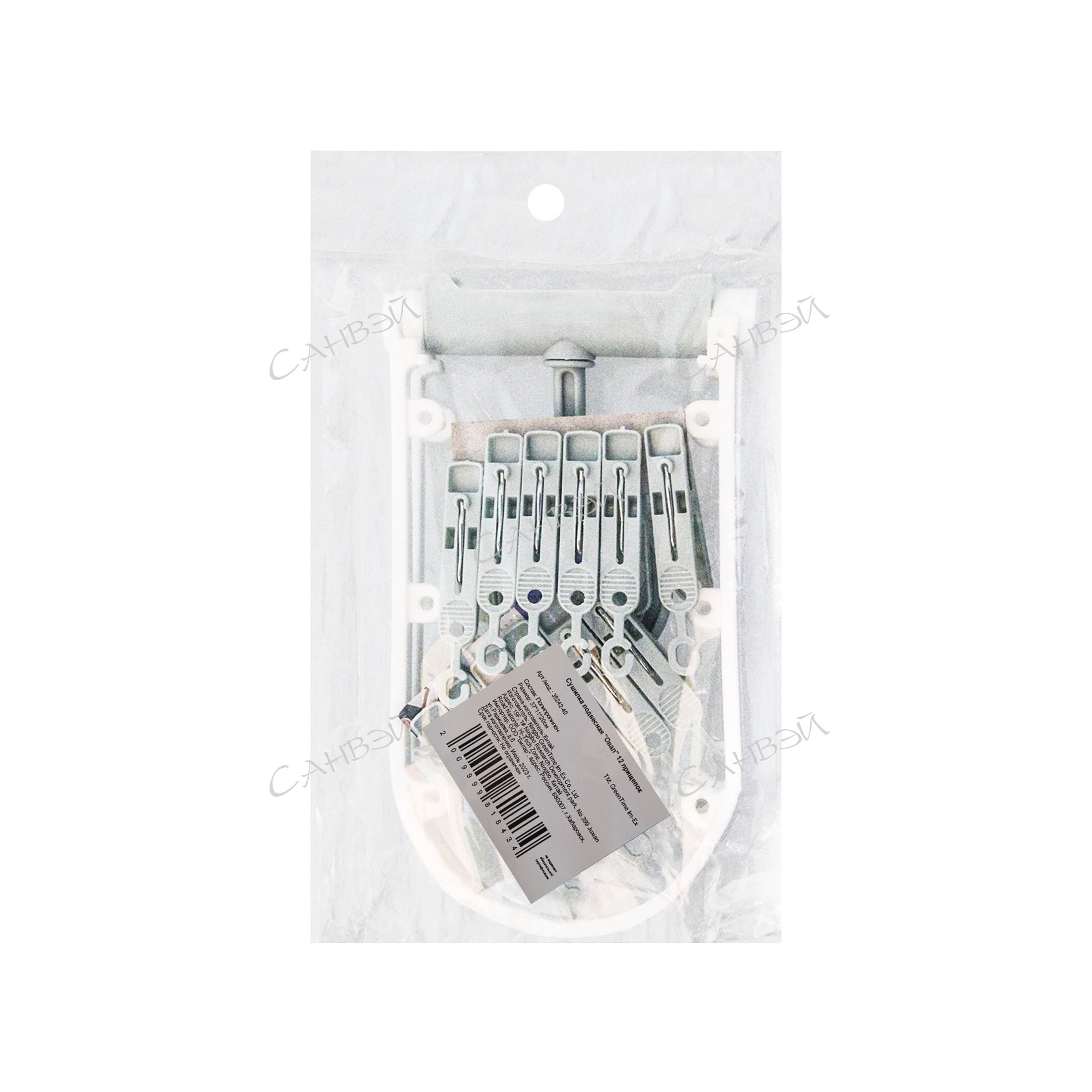 DVL Сушилка подвесная 37*11*20см пластик,металл микс овал GT 1 шт (12 прищеп.) / 100шт / 35242-40 / 818434