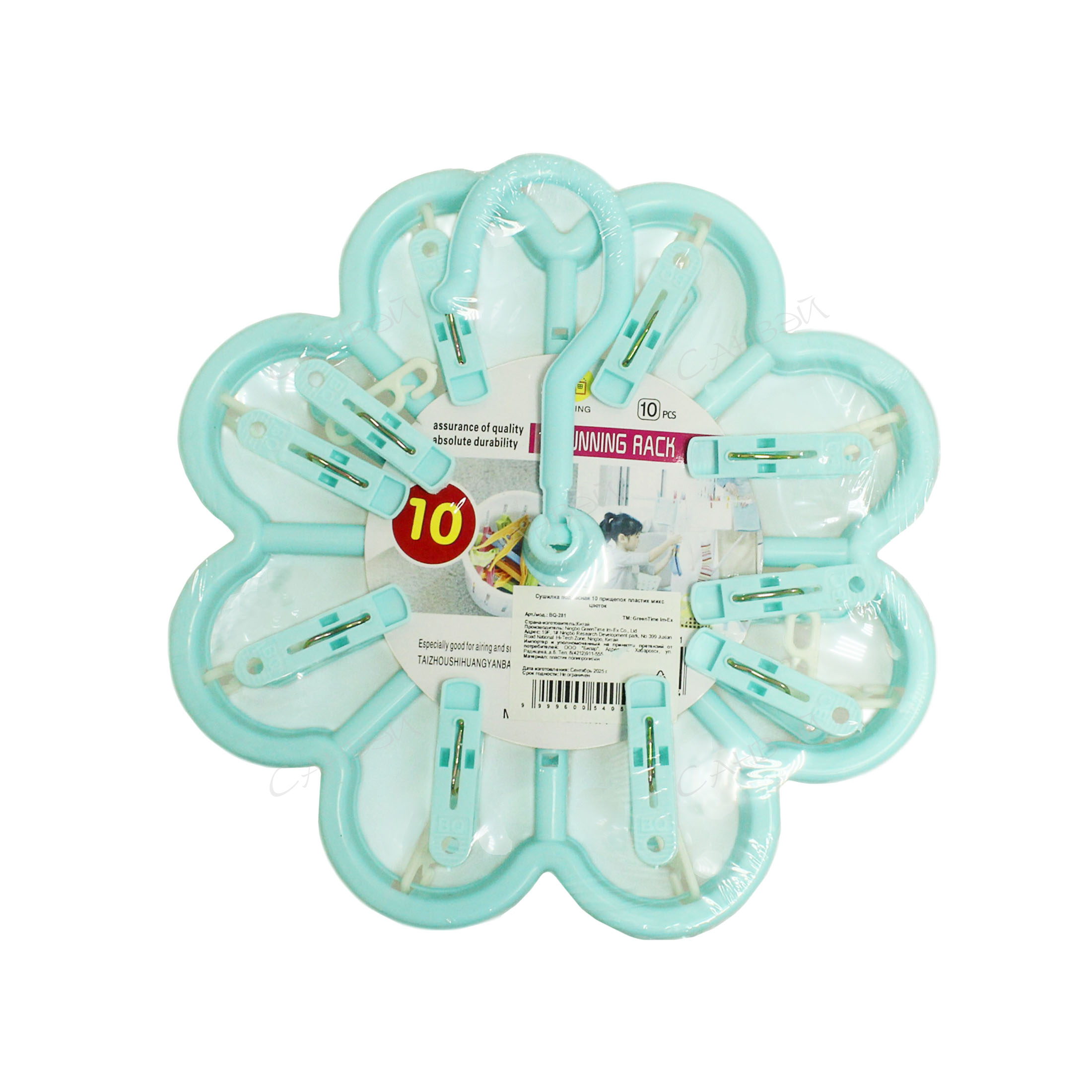 MU Сушилка подвесная пластик микс цветок GT 1 шт (10 прищеп.) / 140шт / BQ-281 / 540591