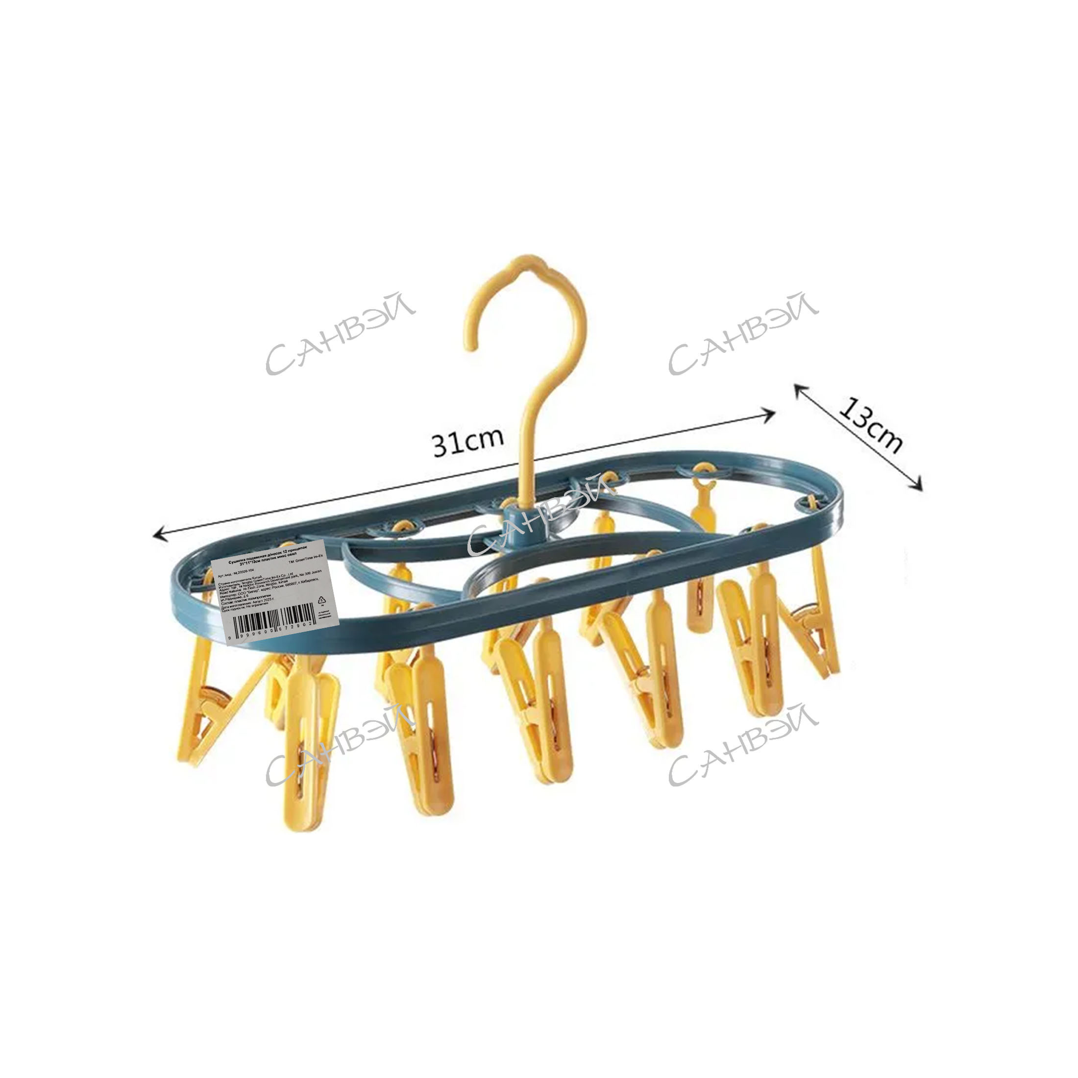 MU Сушилка подвесная д/носок 31*11*13см пластик микс овал GT 1 шт (12 прищеп.) / 130шт / NL20509-104 / 672902