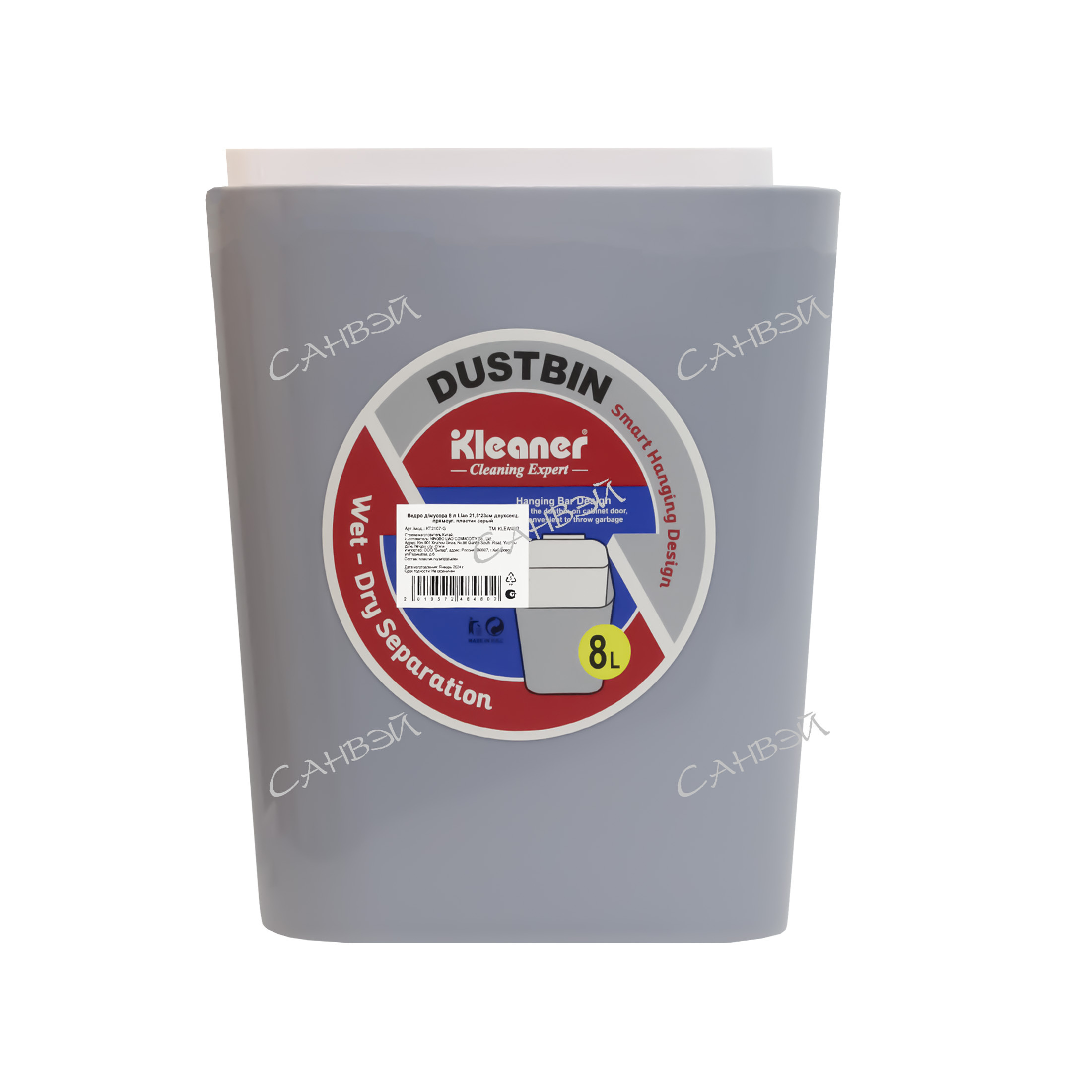 LA Ведро д/мусора 8 л 21,5*23см Kleaner двухсекц. пластик серый 1 шт / 24шт / KT2107-G / 484802