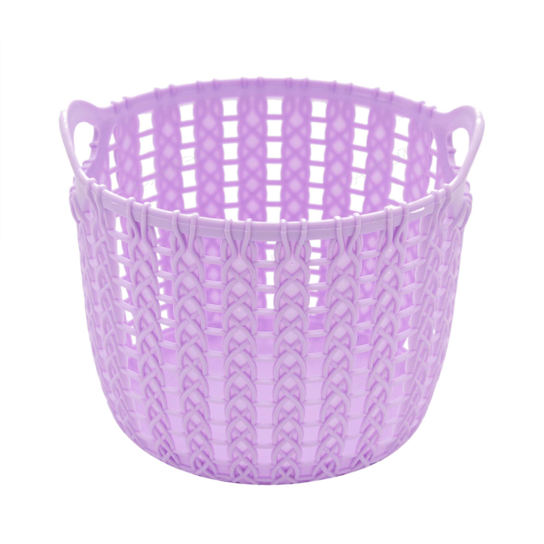 Корзина для хранения вещей GreenTime выполнена в стиле вязанной корзины, имет удобные ручки. Размер изделия 130х110мм, цвет нежная сирень, материал пластик.