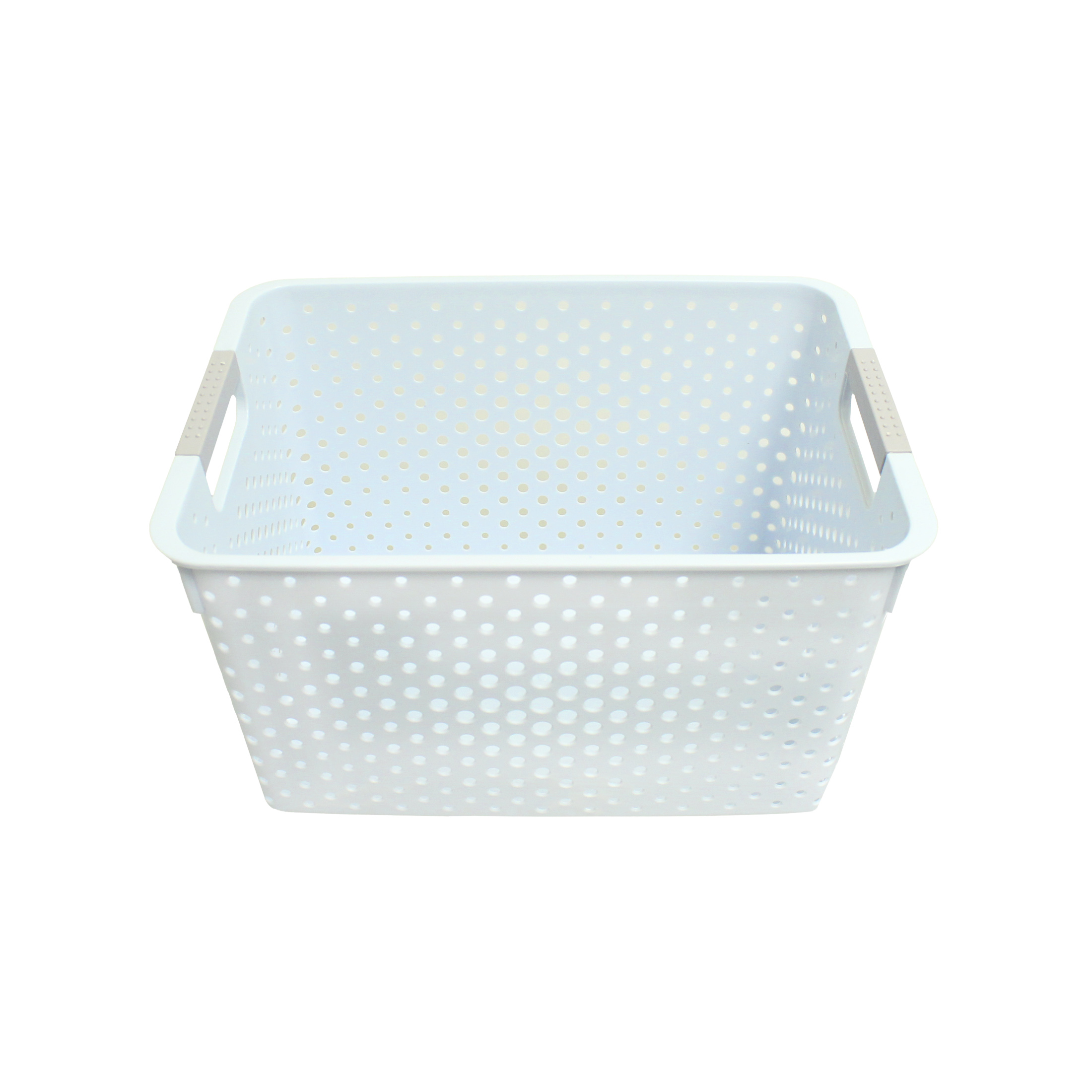 GreenTime Корзина для хранения прямоугольная с ручкой Вязание Мятно-серая 27.5х18.5х14.5 см является идеальным решением для организации пространства в вашем доме. Размеры 27.5х18.5х14.5 см позволяют удобно располагать в ней различные предметы, будь то одежда, бельё или игрушки. Эта универсальная ёмкость прекрасно подходит для хранения в детской, спальне, гардеробной, ванной, гостиной или прихожей, помогая поддерживать порядок и чистоту в вашем доме. Материал: пластик.