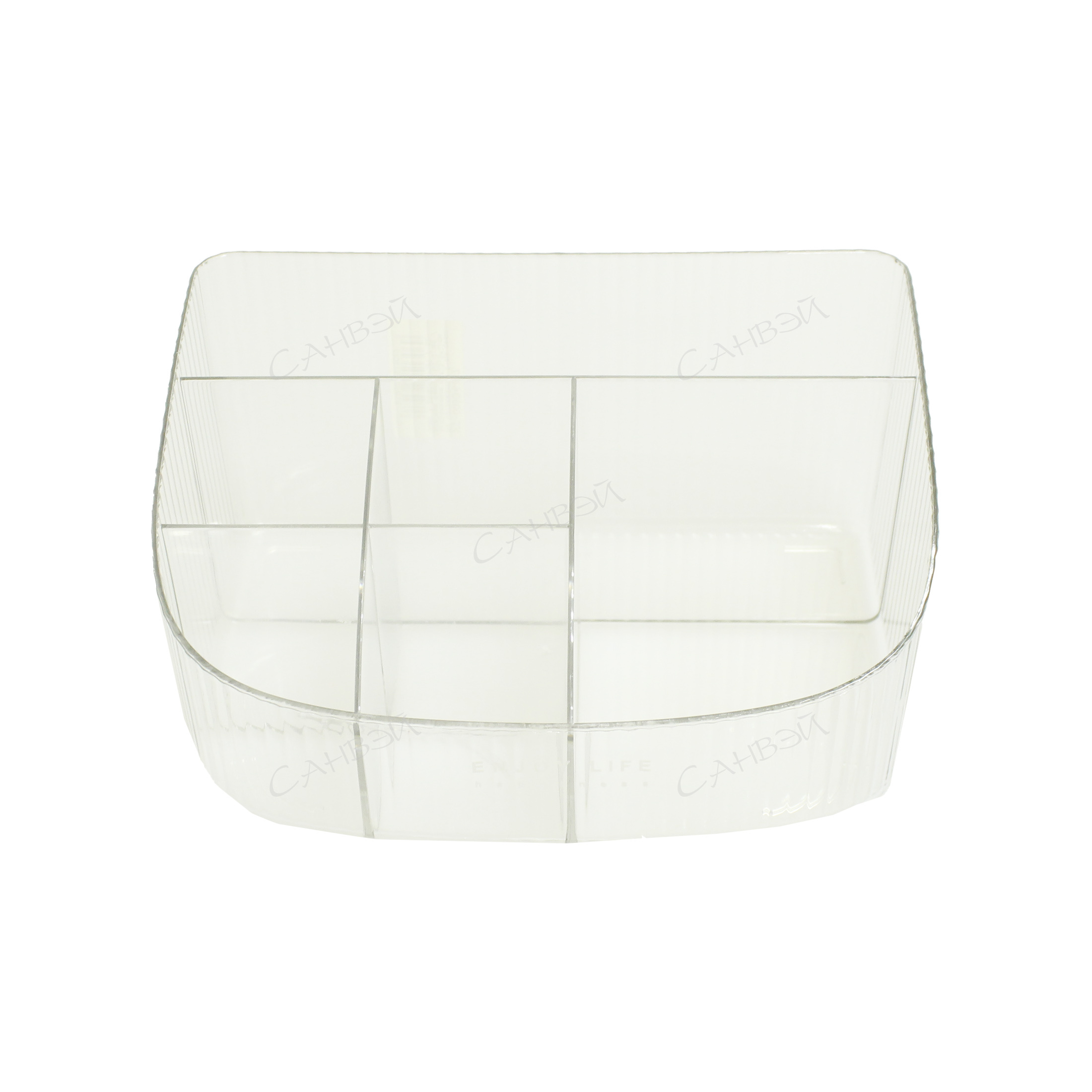GreenTime Органайзер для хранения 6 секций Белый 23х15.5х11 см подходит для хранения косметики, макияжа, гигиенических и любых других средств для ухода и красоты. Универсальный контейнер прозрачного цвета выполнен из высокопрочного и влагостойкого пластика. Современный дизайн и лаконичные формы органайзера идеально впишутся в абсолютно любой интерьер квартиры или загородного дома.