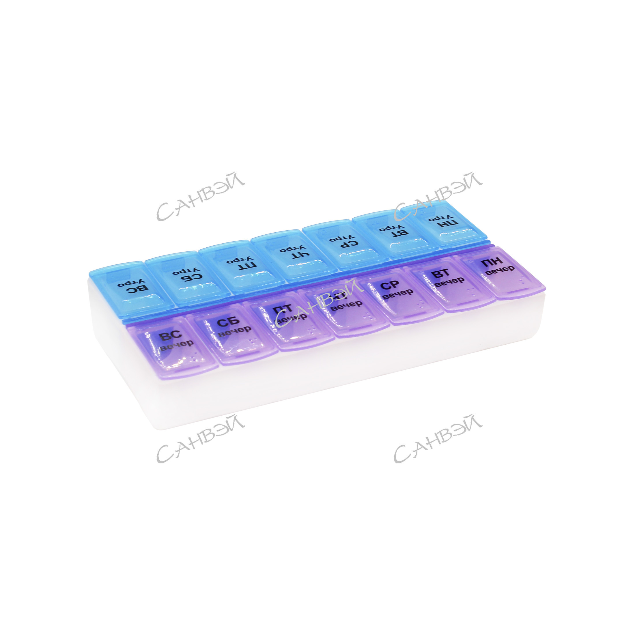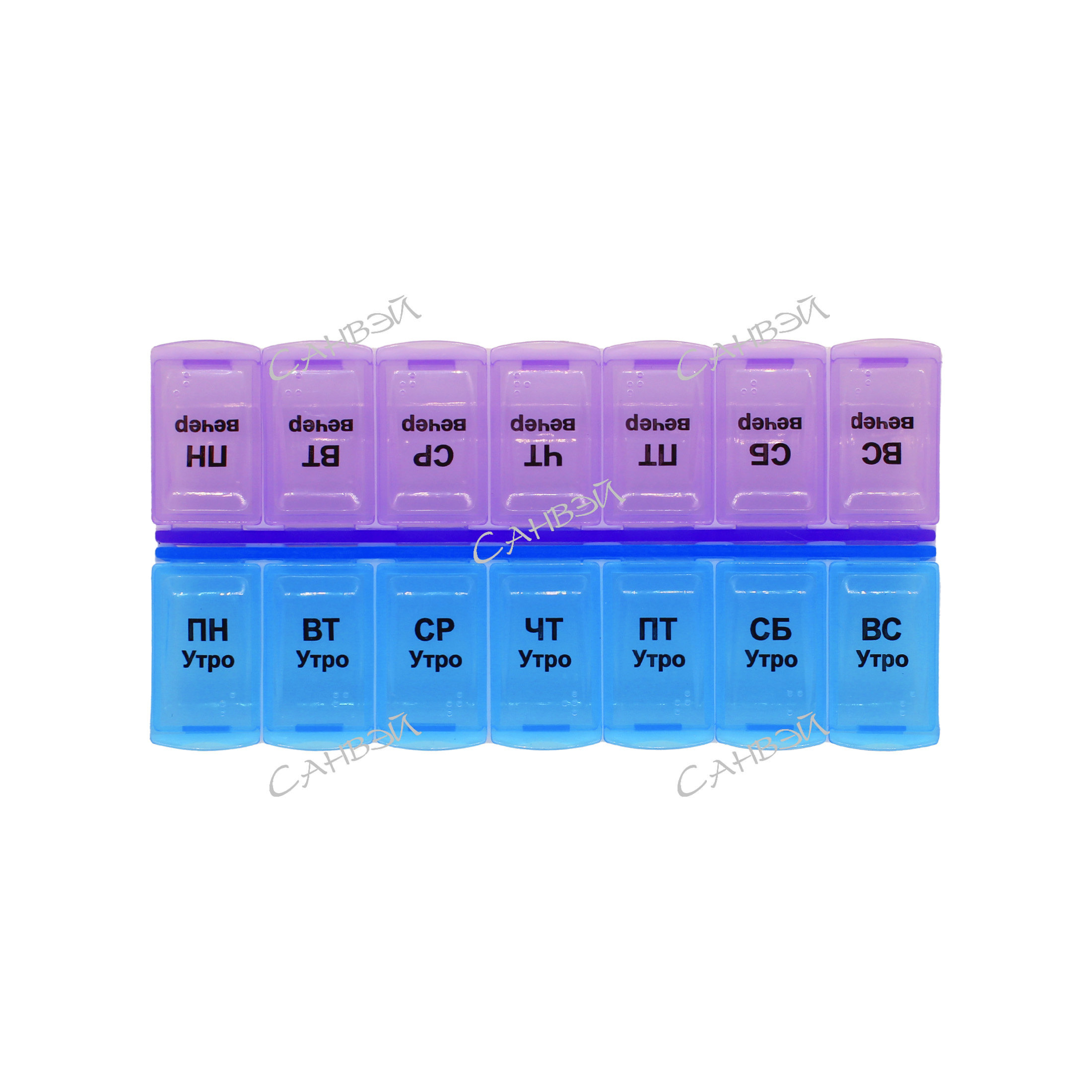 DVL Органайзер д/таблеток утро/вечер на 7дн. (2 секции) прямоуг. 13*7*2,5см пластик фиол-син GT 1шт / 360шт / 34257-169 / 140292