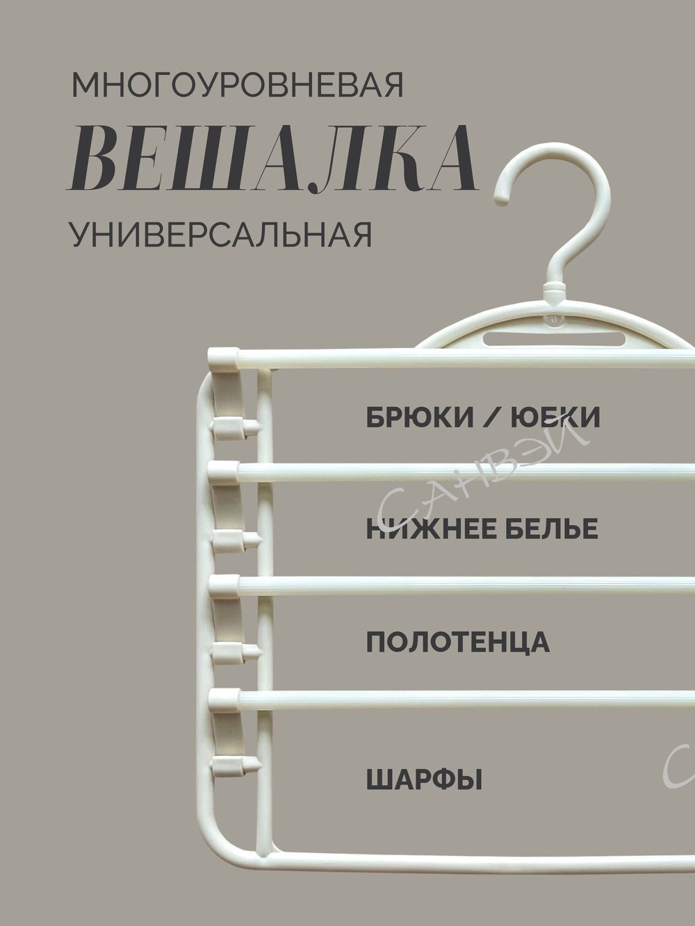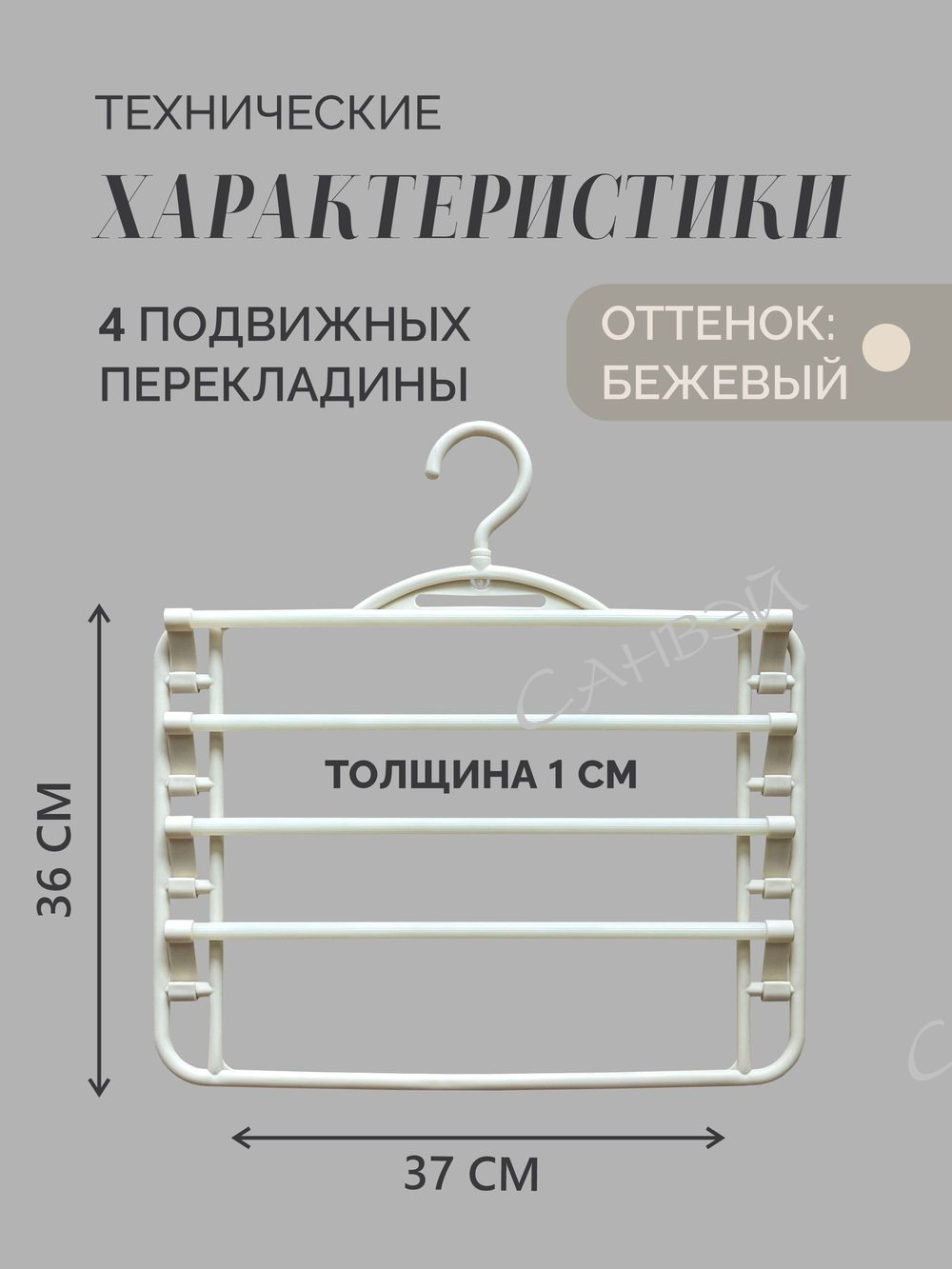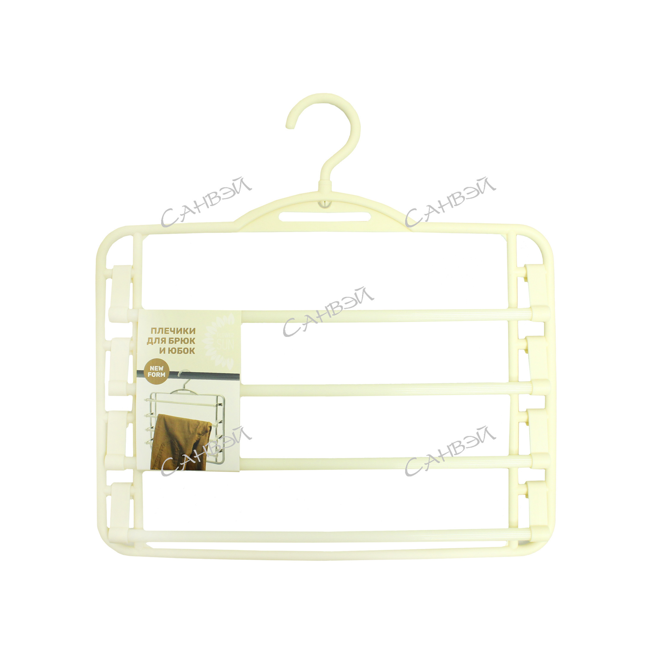 Yi Плечики пластиковые с четырьмя перекладинами FlowerSun Бежевый 36х1х37 см являются идеальным решением для организации вашего гардероба. Стильные и функциональные плечики помогут сохранить форму ваших вещей, предотвратить их смятие и сэкономить место в гардеробе благодаря четырем подвижным перекладинам. Они позволят удобно развешивать брюки, юбки, нижнее белье, полотенца, шарфы.