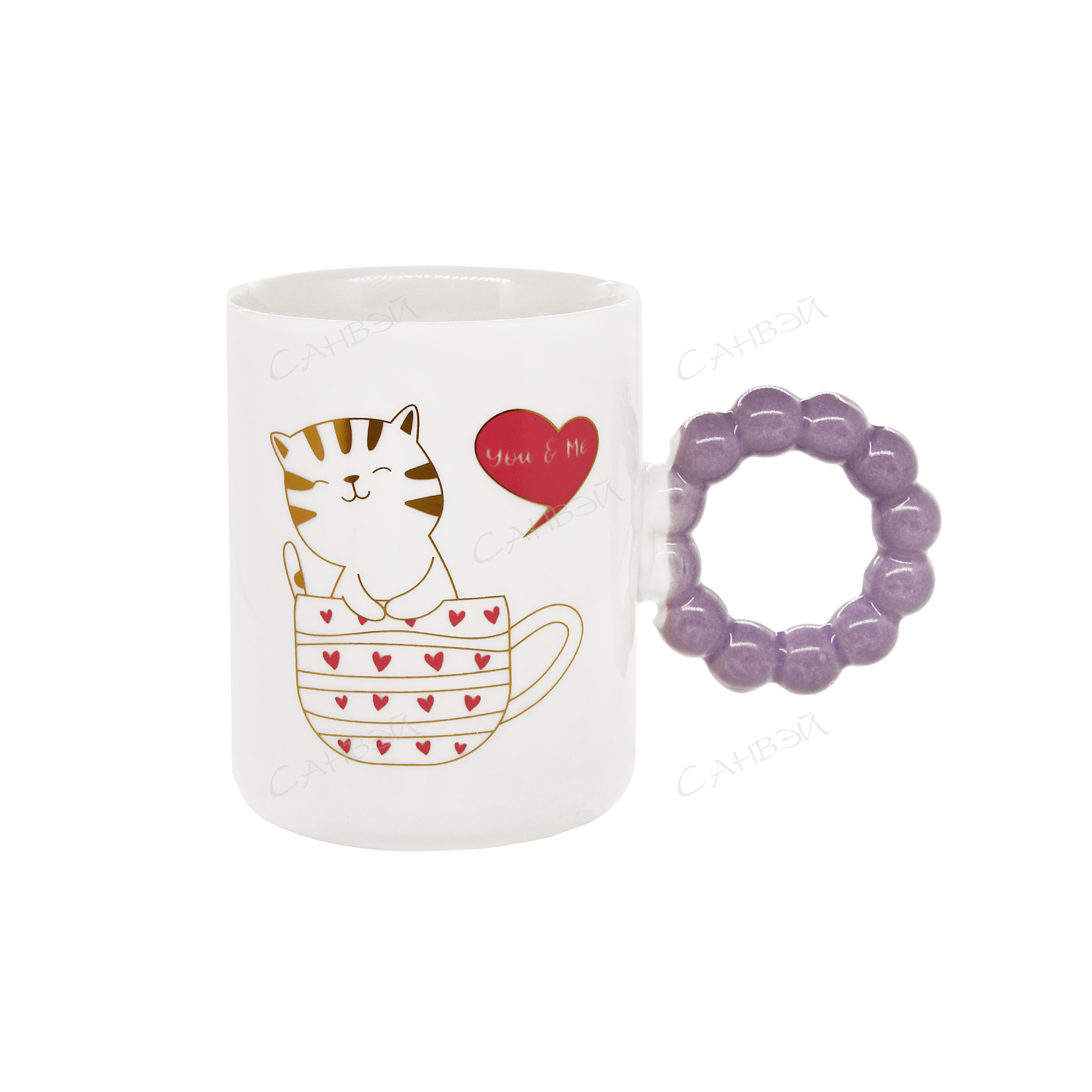 DVL Кружка 8*10,5см керамика бело-золотая Коты цилиндрич. Жемчуг GT 1шт / 48шт / 6724-85 / 739809