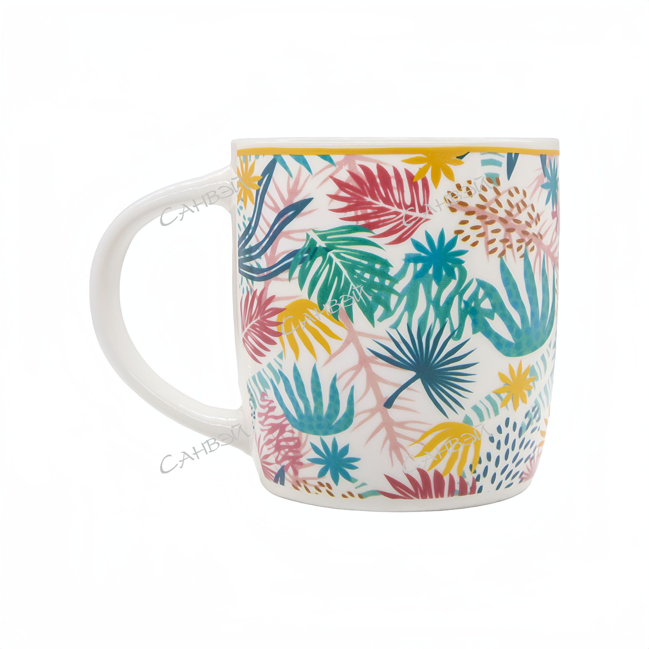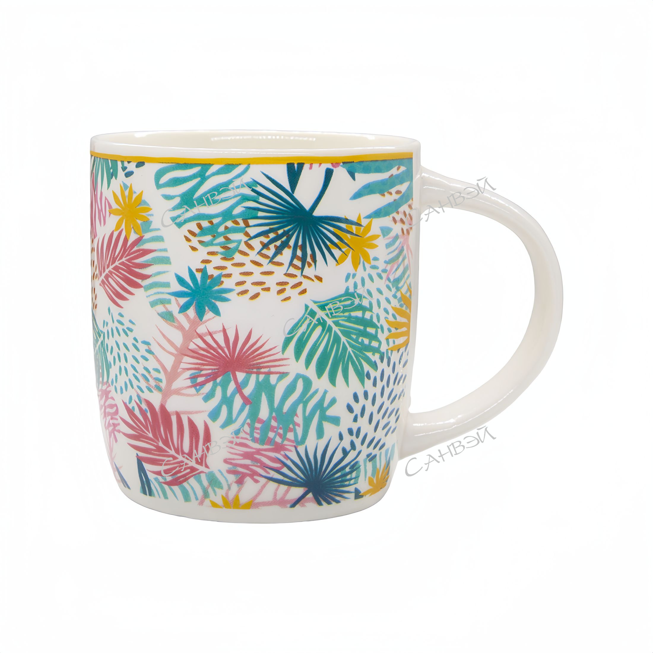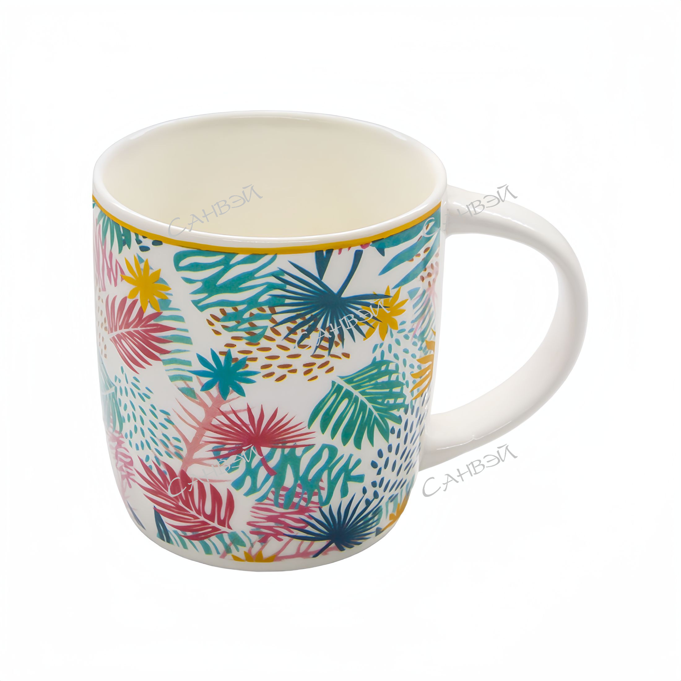 Кружка Шейп керамическая с листьями 300 мл в Санвэй! Отлично дополнит коллекцию вашей кухонной посуды и будет служить долгие годы. Кружка вмещает 300 мл вашего любимого напитка. Яркий принт поднимет настроение и будет приятным дополнением к Вашему вкусному напитку. Кружка станет прекрасным подарком для Вас и Ваших друзей или коллег.