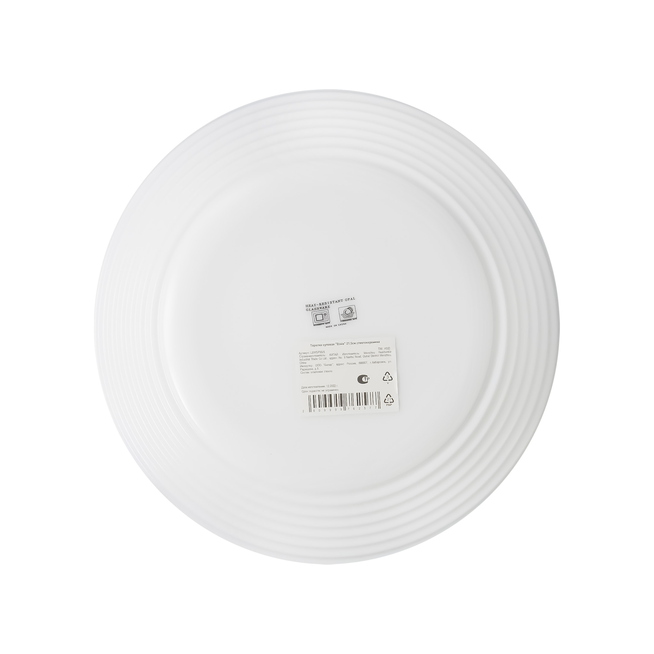 WHD Тарелка суповая 1шт Вэйв 21,5см стеклокерамика белый GT / шт / LBWSP85/6 / 762577