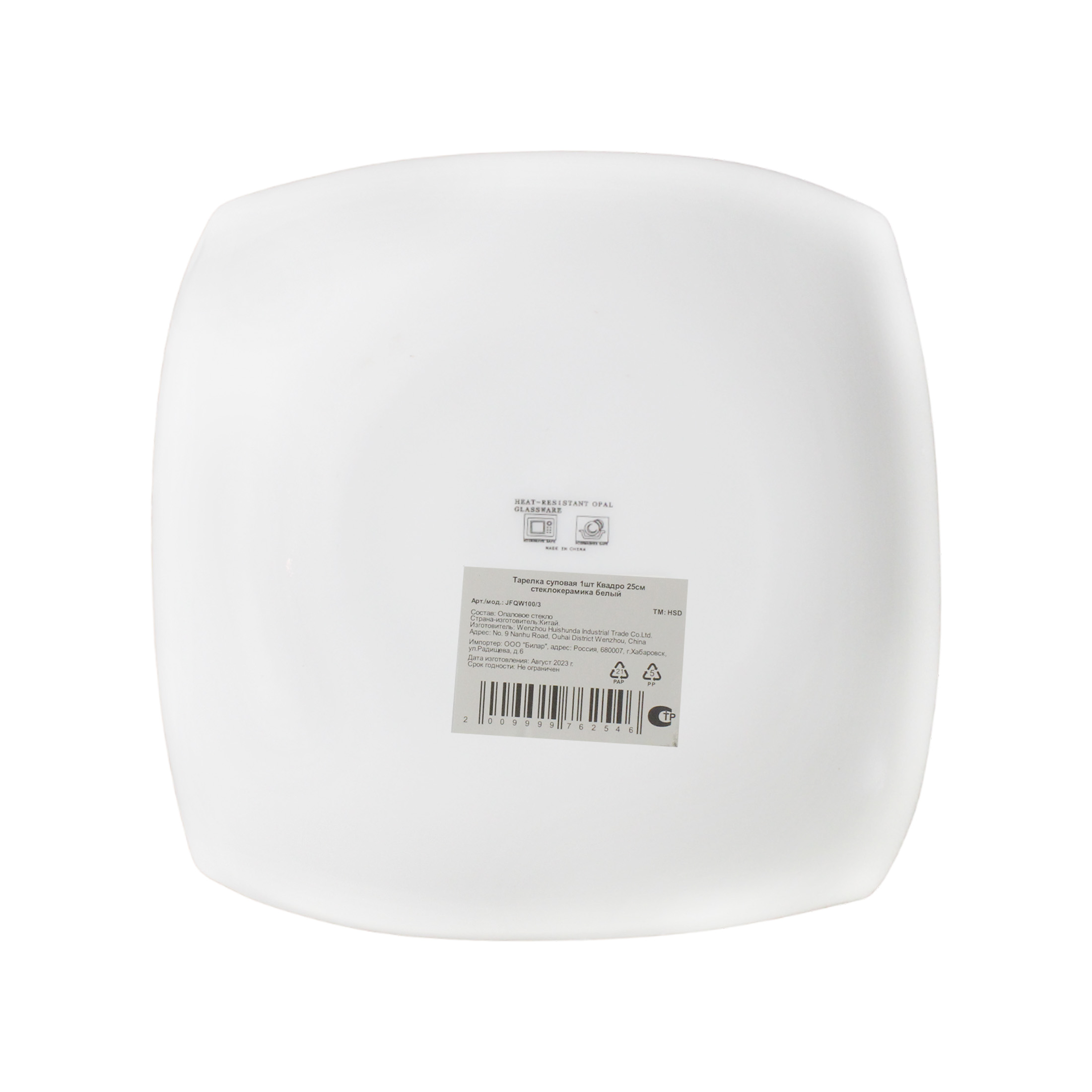 WHD Тарелка суповая 1шт Квадро 25см стеклокерамика белый GT / шт / JFQW100/3 / 762546
