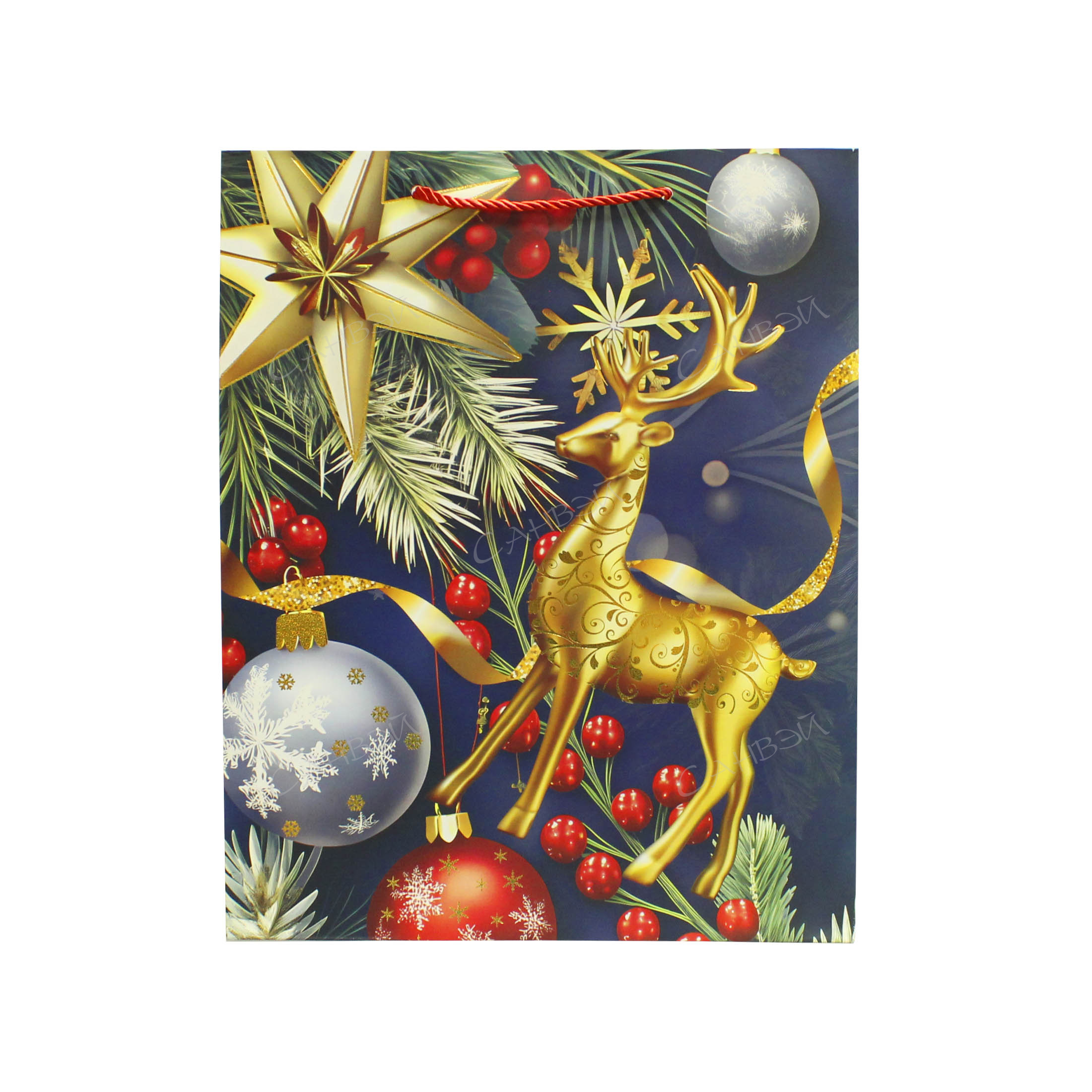 DVL Пакет НГ глянц. 26*32*10см бумага Санта,олень,подарки,елка микс руч/веревка GT 1шт / 480шт / 10410-3 / 167954