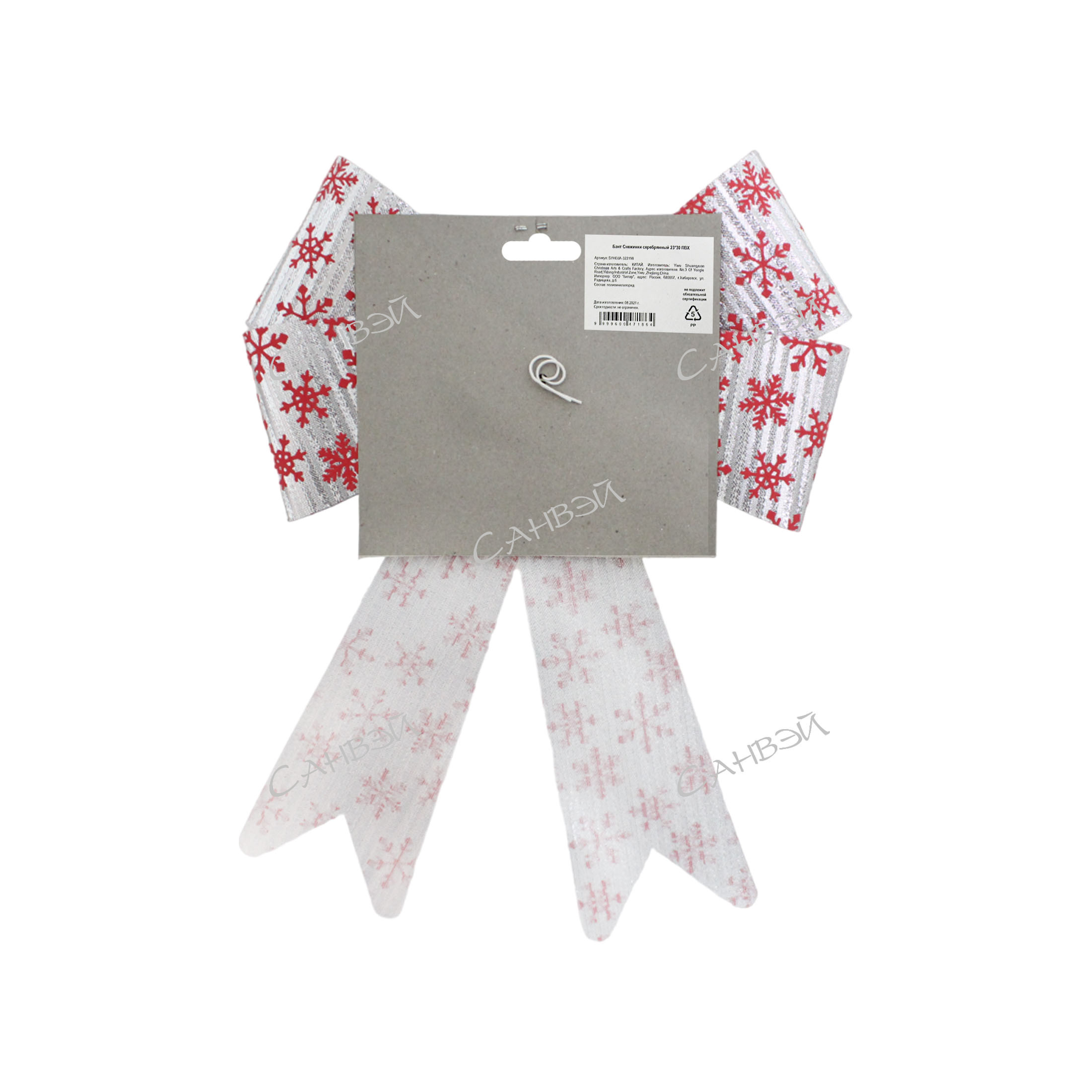 Бант снежинки упаков. серебряный 1шт 23*30см пвх SHY / 280шт / SYHDJA-322198 / 471864