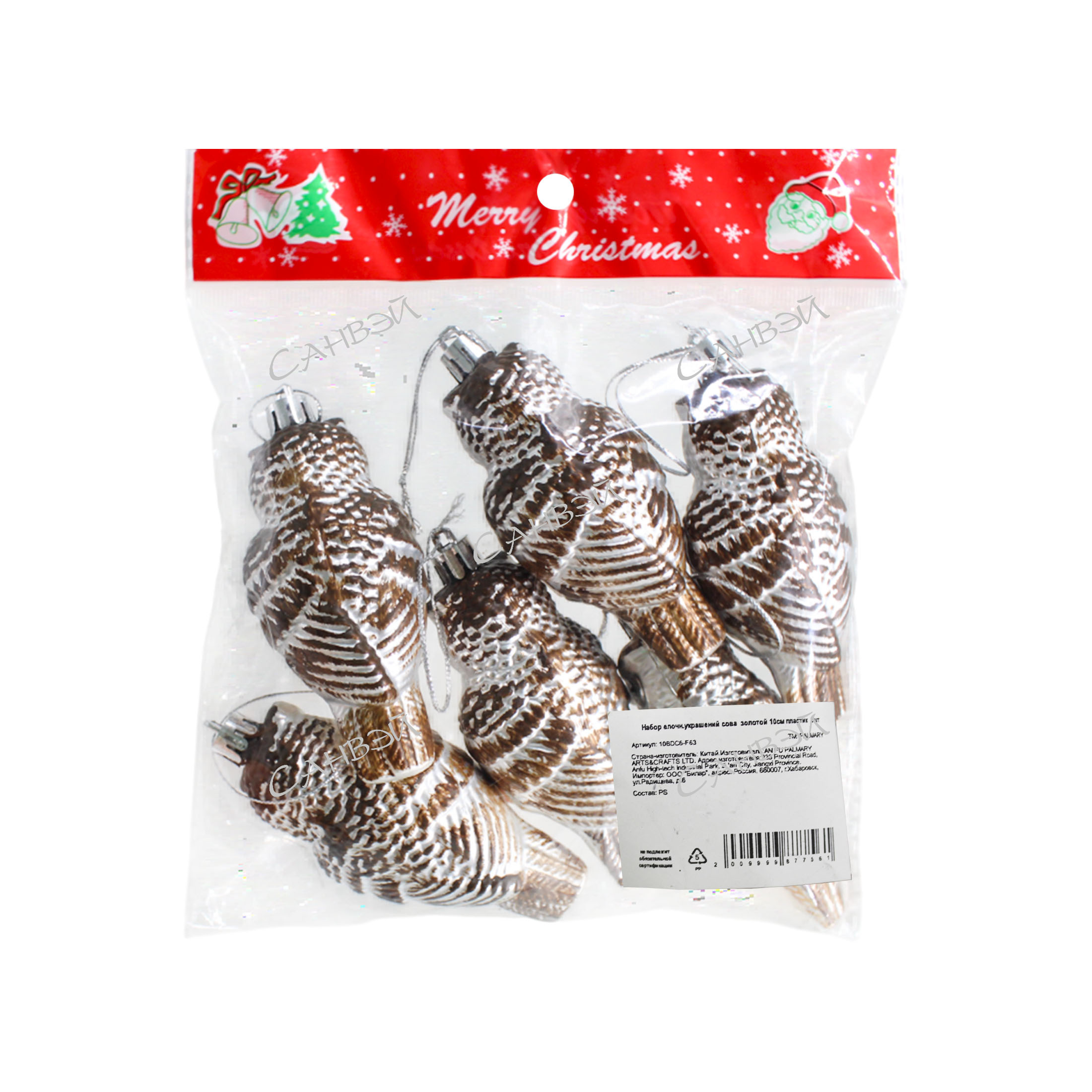 DVL Набор елочн.украшений сова золотой 10см пластик Palmary 6шт / 160шт / 10BDC6-F63 / 877561