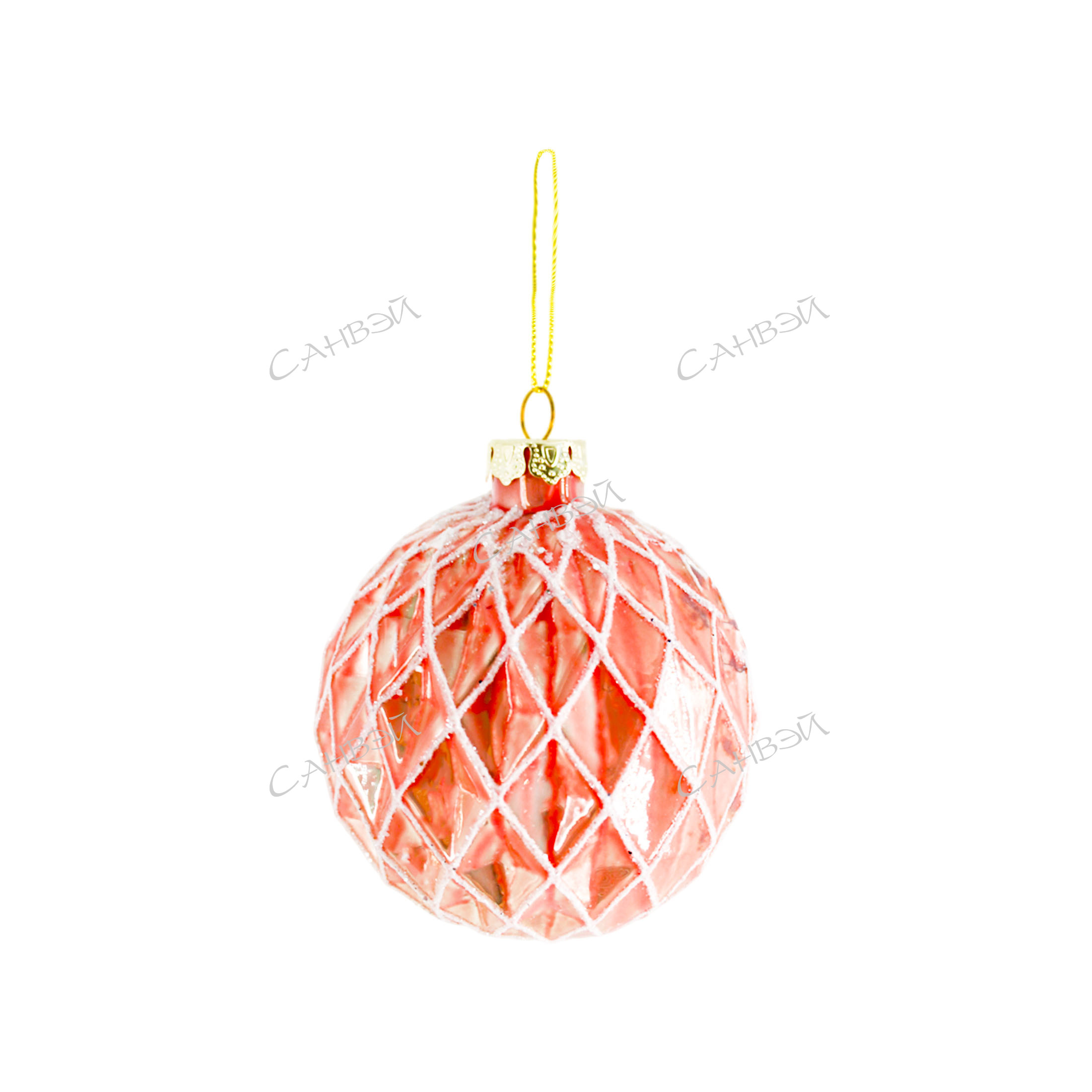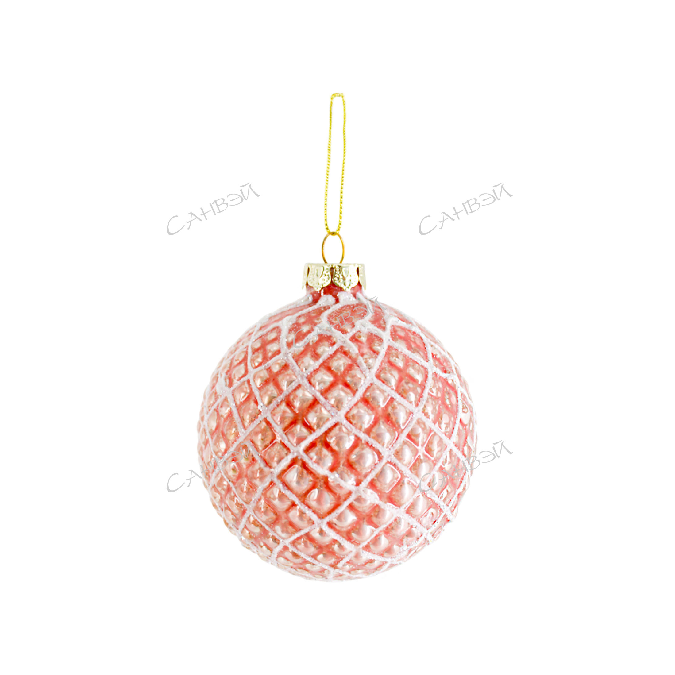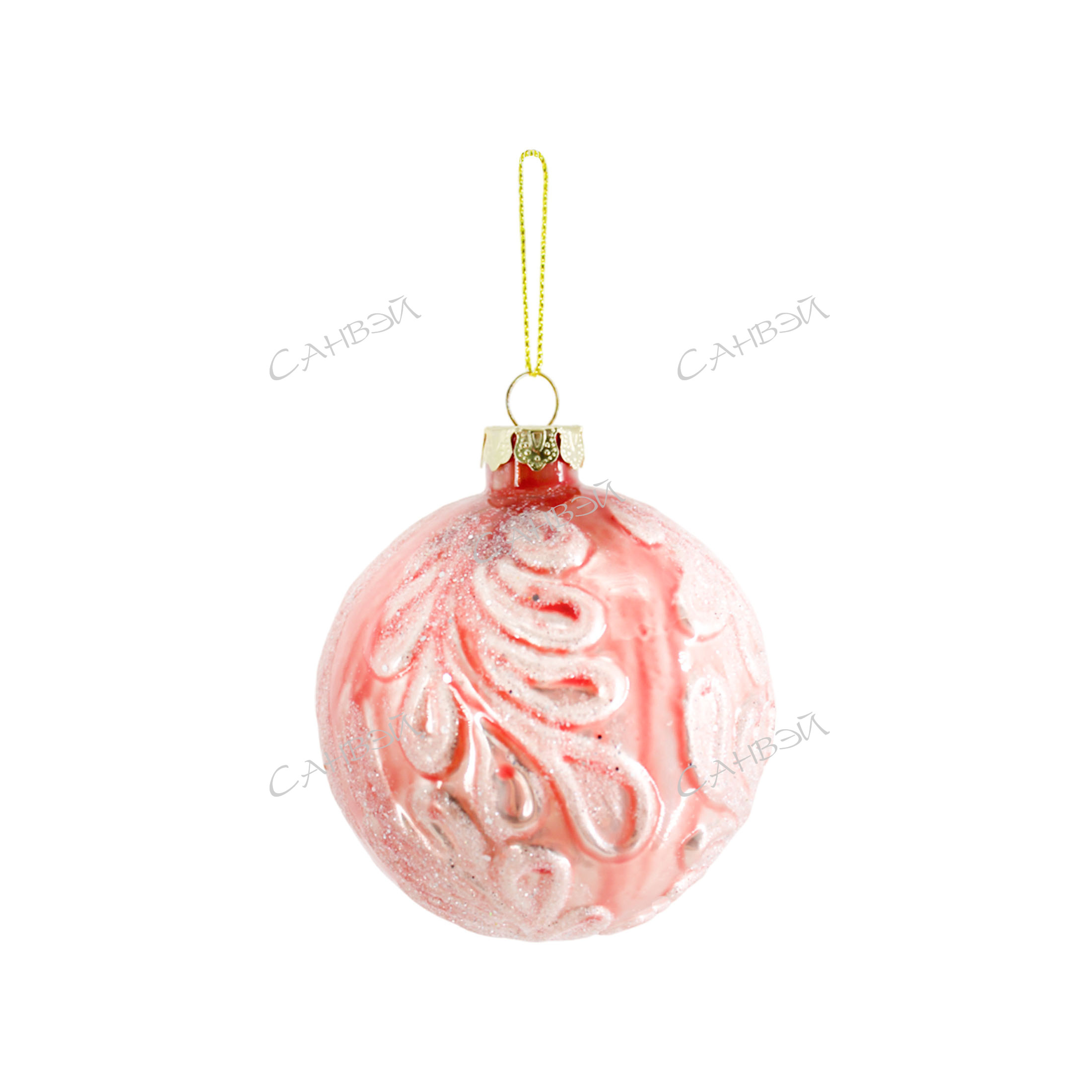 Елочная игрушка Шар с с рифленым рисунком цвет розовый глянец 8см стекло /Арт-SYBLQA-392125/552938/SHY