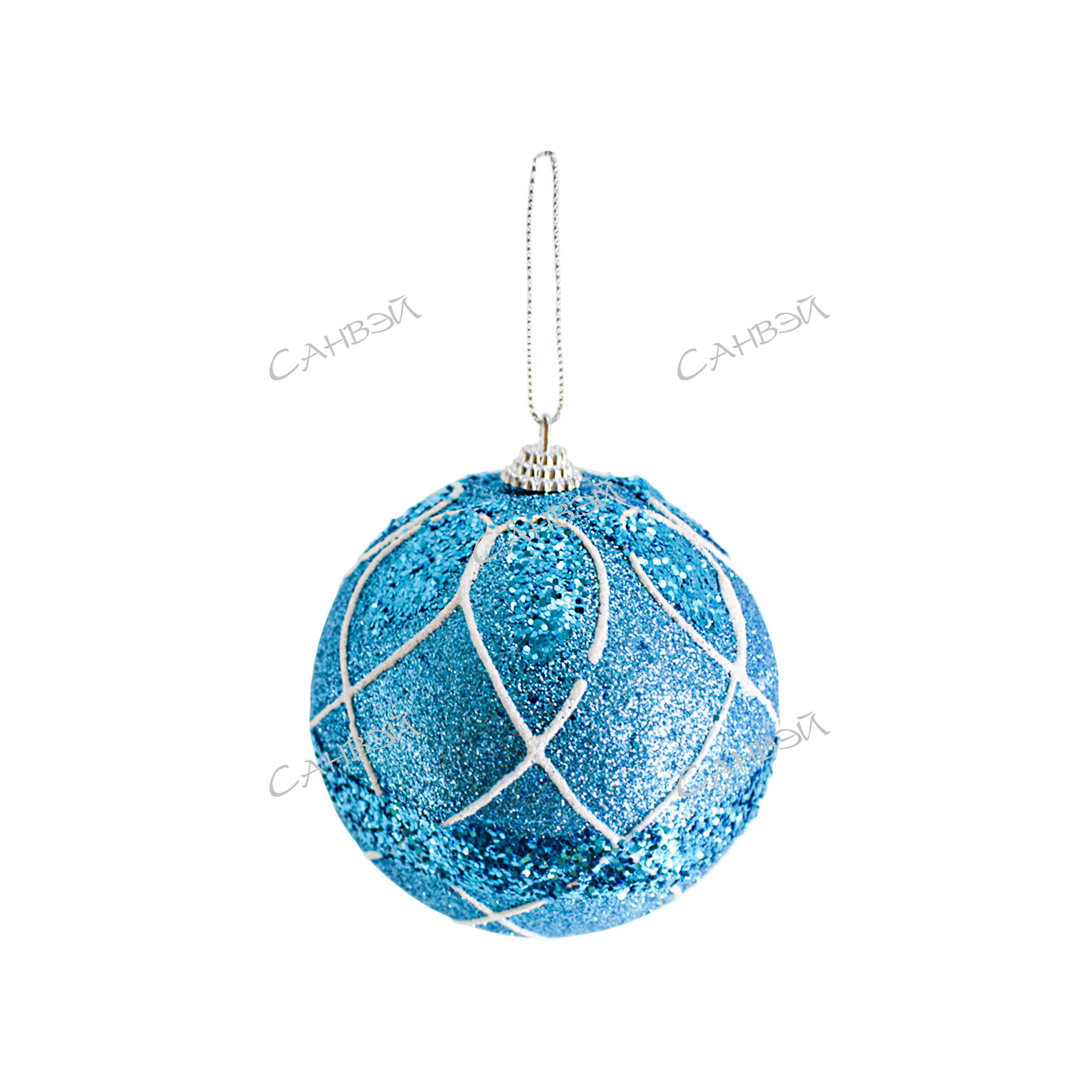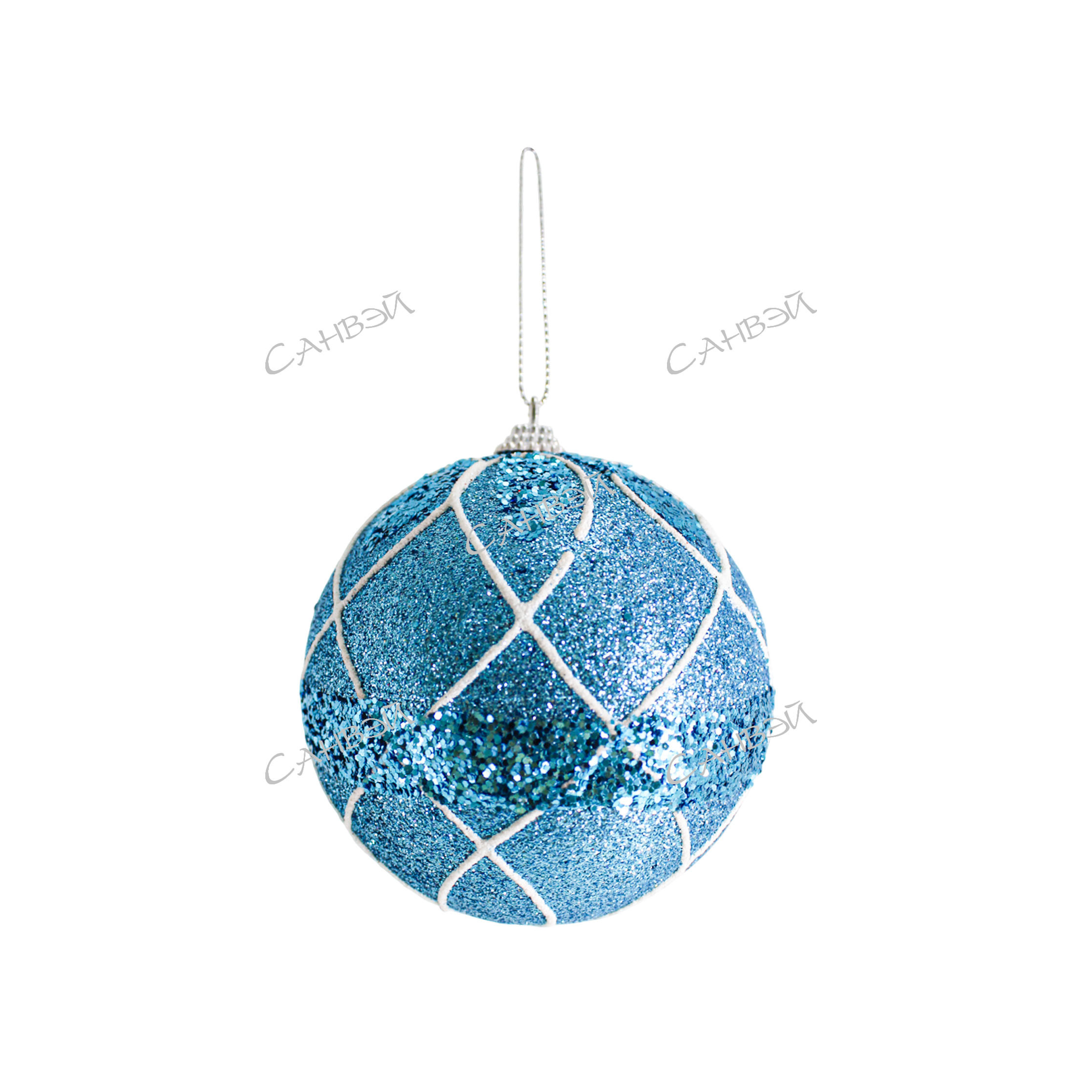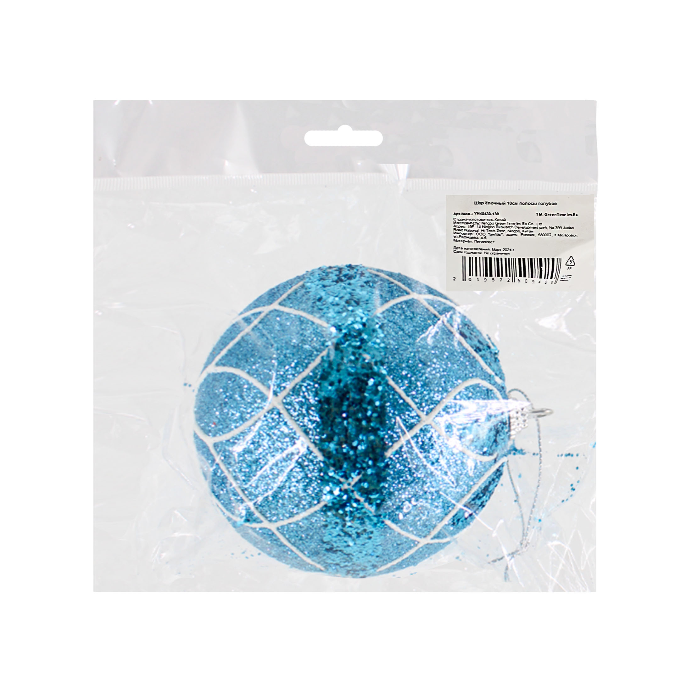 MU Шар ёлочный 10см полосы голубой пенопласт GT 1шт / 144шт / YH40430-130 / 509437