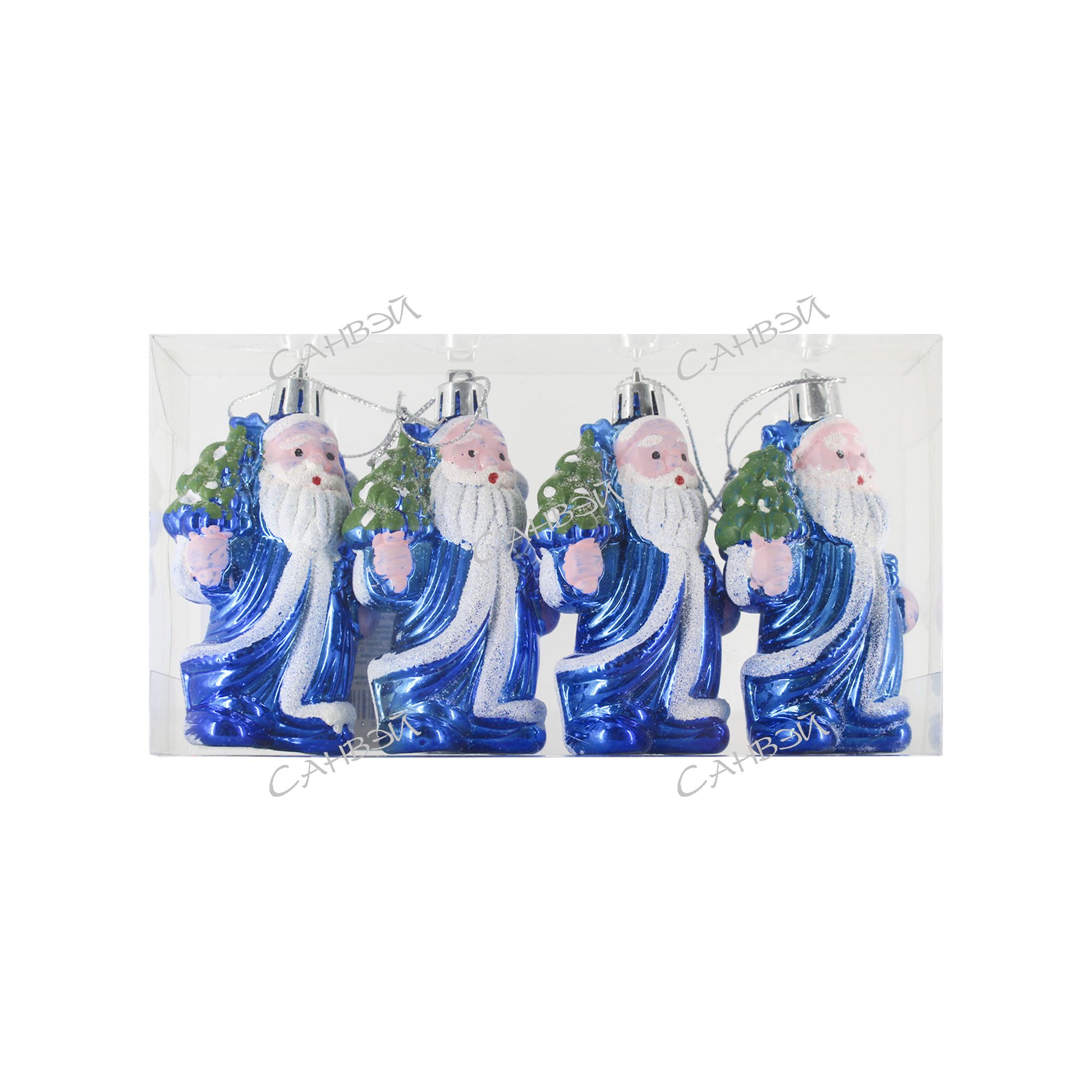 Подвеска елочная Дед Мороз 9см (4предм.) синяя пластик Palmary 1уп. / 280шт / 9ADC4-E38/4H/blue / 499813