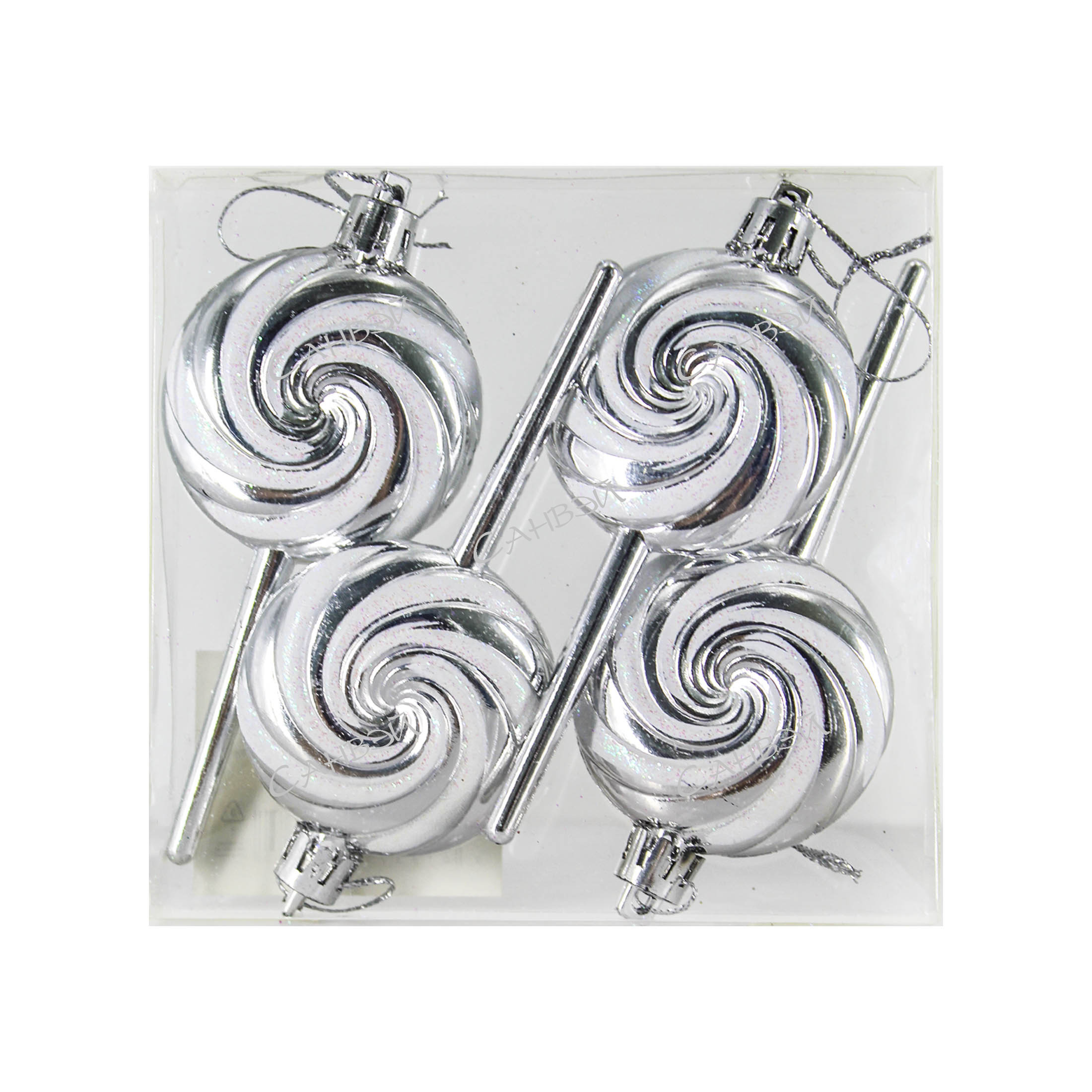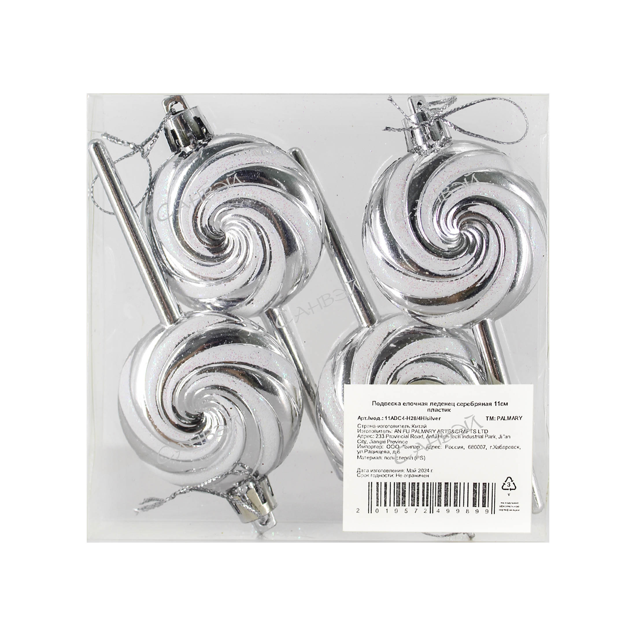 Подвеска елочная леденец 11см (4предм.) серебряная пластик Palmary 1уп. / 576шт / 11ADC4-H28/4H/silver / 499899