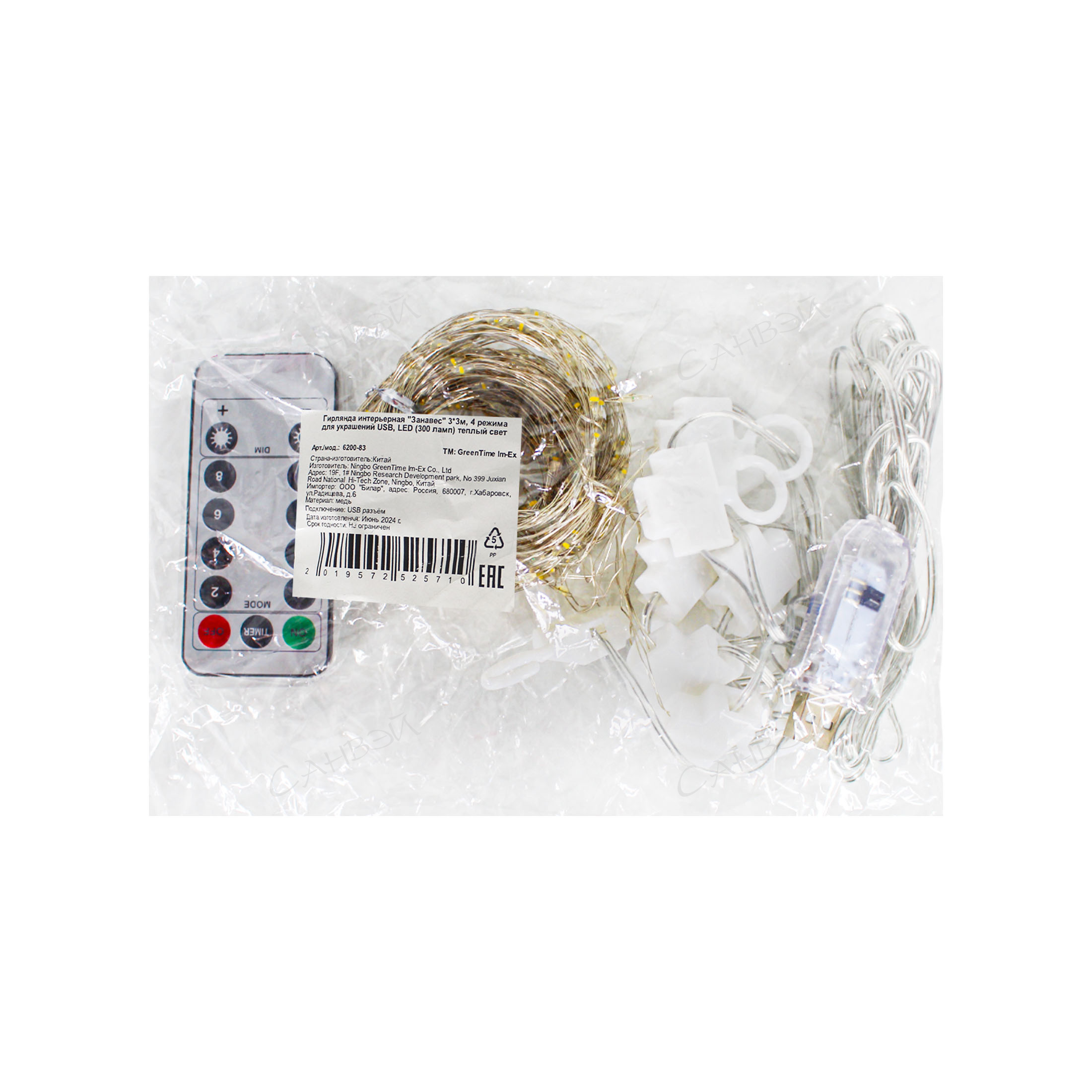 DVL Гирлянда интерьерная занавес 3*3м 4 режима,USB д/украш. LED (300 ламп) тепл.свет медь GT 1шт / 100шт / 6200-83 / 525710