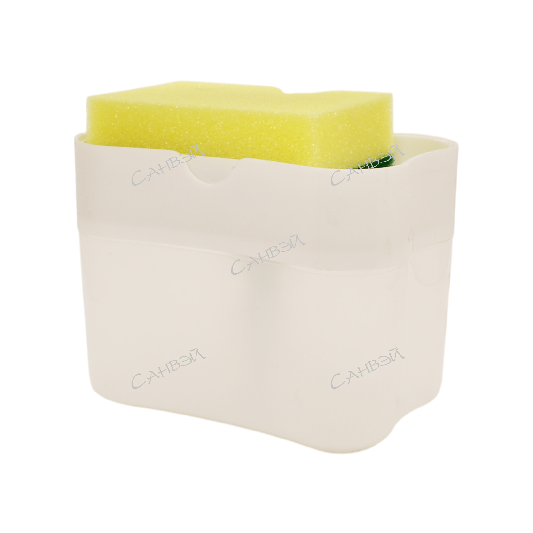 Налейте моющее средство в диспенсер. Намочите губку и нажмите на дозатор.