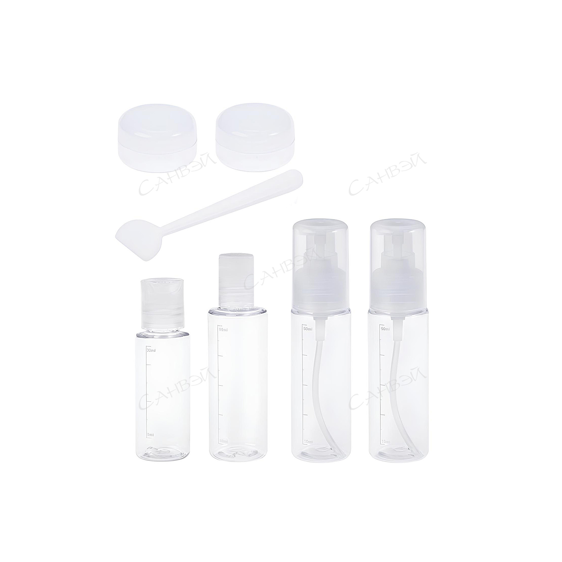 Дорожный набор для косметических средств 6 предметов 3x50 мл+30 мл+2x5 г белый - компактный набор флаконов, предназначенный для путешествий, идеально подойдет в поездках на море, а любимые средства всегда будут с собой. Подходят для густых и жидких средств.