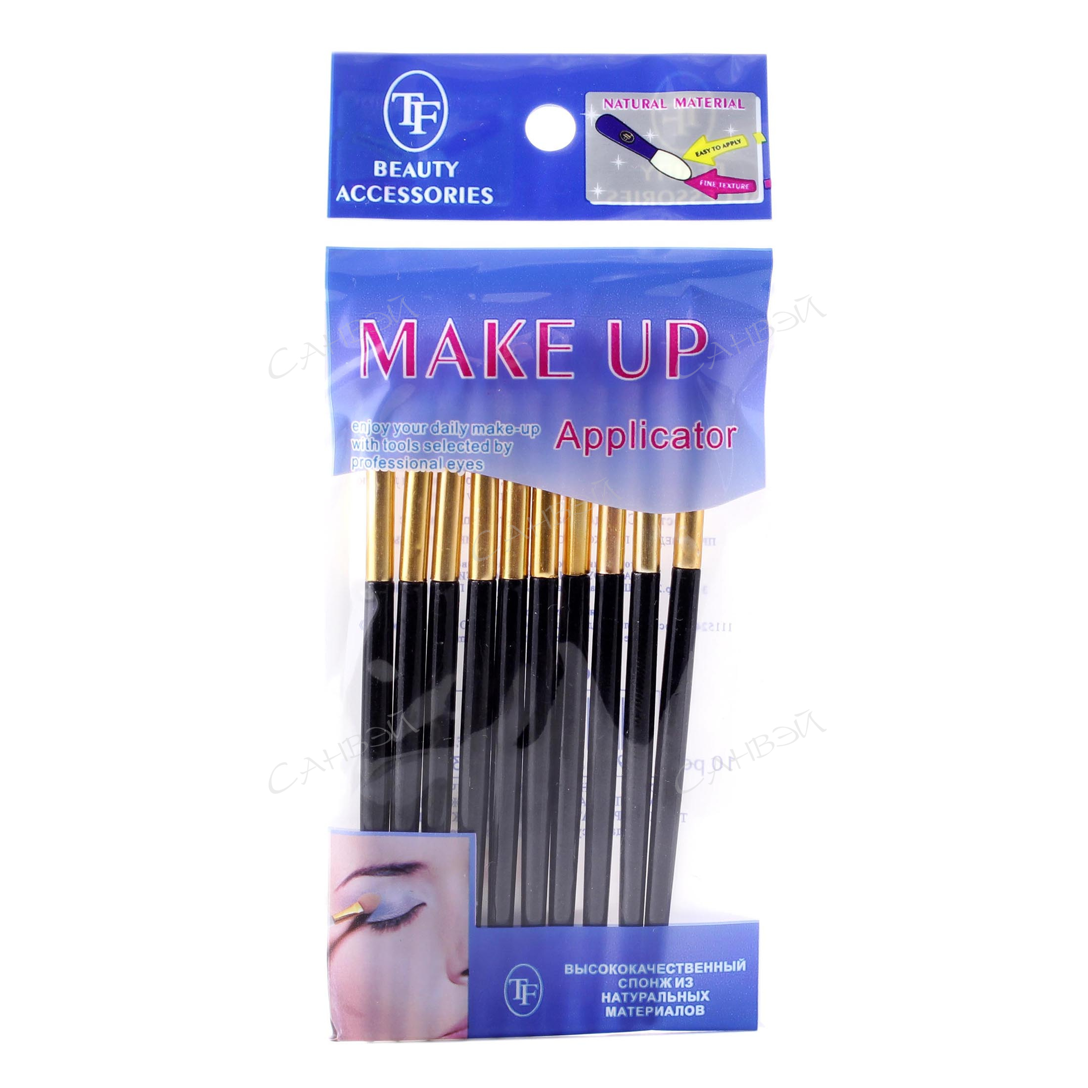 Аппликатор для теней с длинной ручкой предназначен для нанесения и растушевки теней. Возможно смачивать аппликатор. Можно использовать для растушевки линии карандаша. 2 формы спонжа для различного нанесения. Материал латекс. Количество 10 шт.