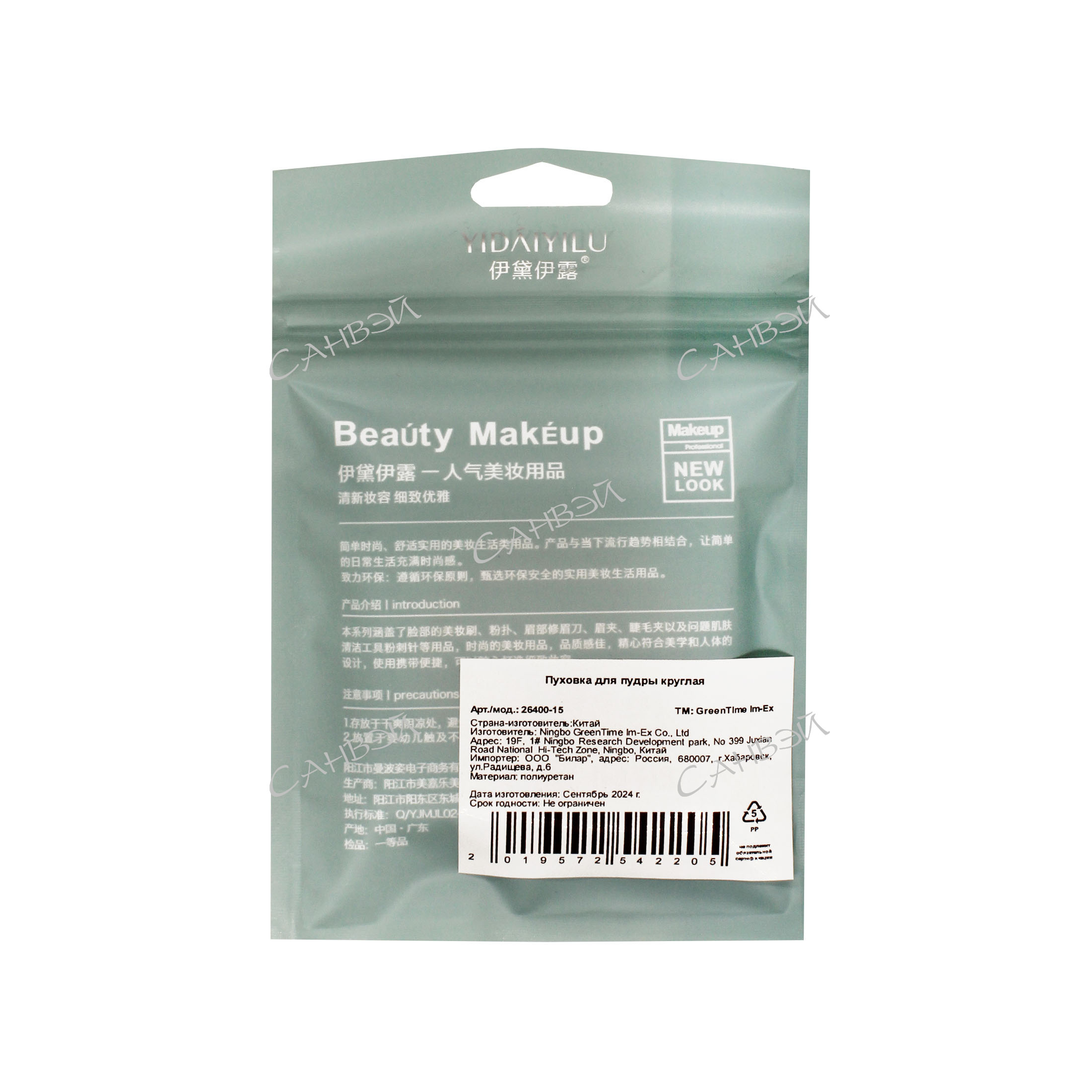 DVL Пуховка д/пудр.,крем.текстур спонж ПУ кругл. ПУ 5,5см бело-бежевая GT 1шт / 360шт / 26400-15 / 542205