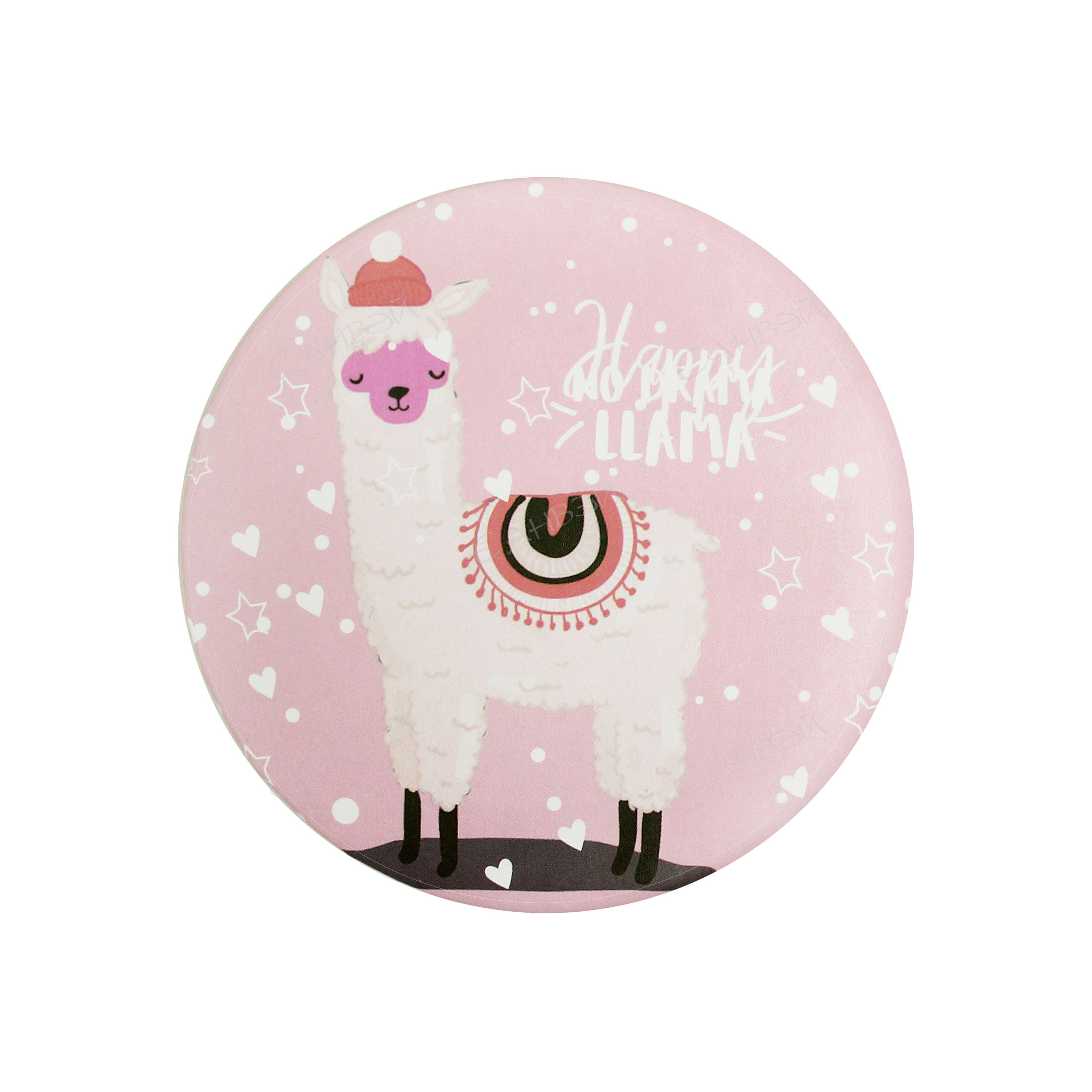 MU Зеркало карманное d7,5см полиурет. лама розовый кругл. GT 1 шт / 720шт / LLMT-5753 / 564320